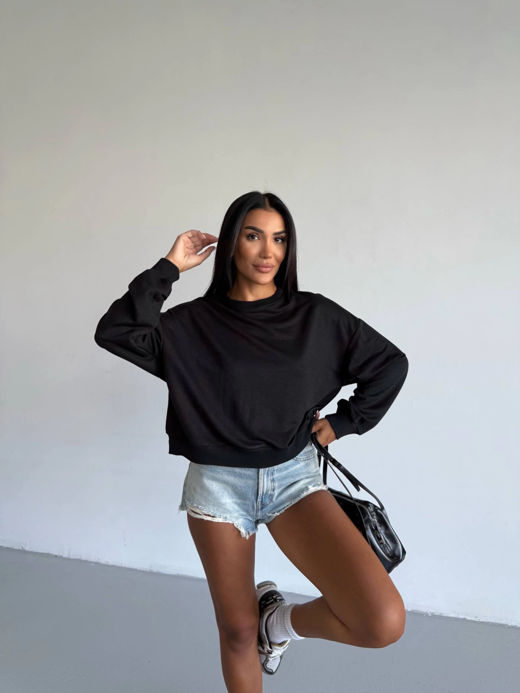 2 iplik bisiklet yaka sweat siyah f2339
