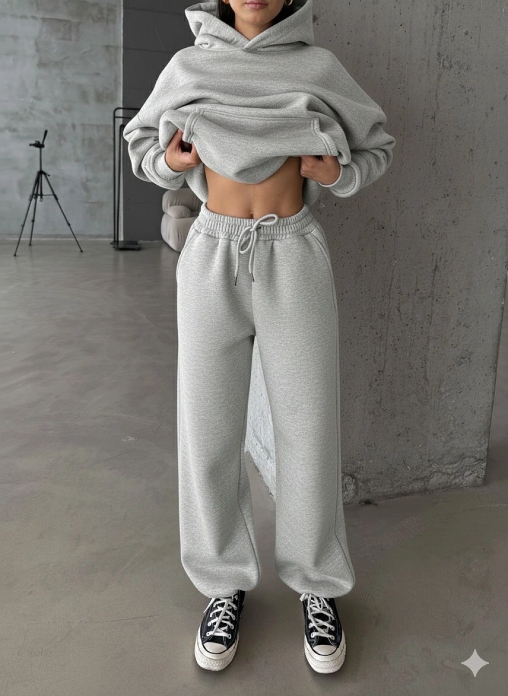 3 iplik şardonlu paça lastikli eşofman gri is001