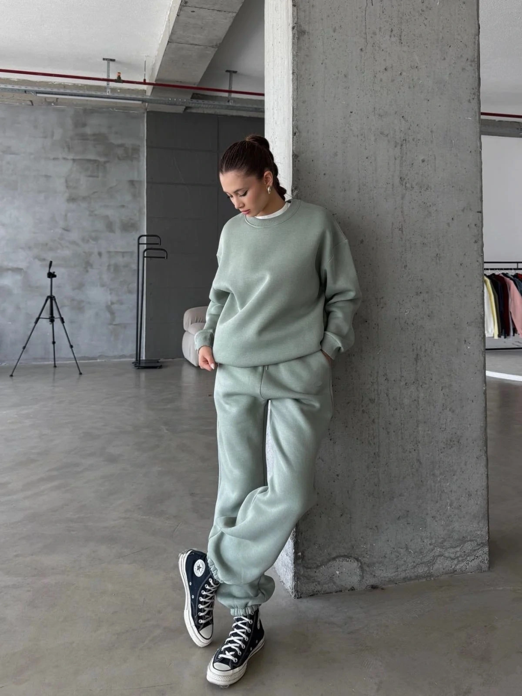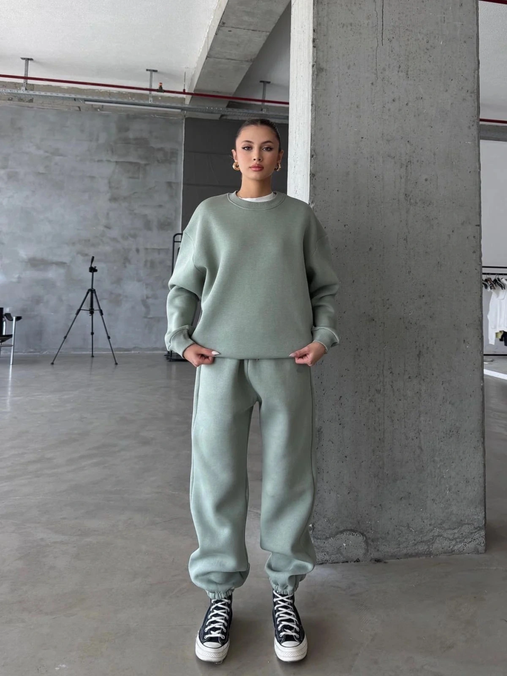 3 iplik şardonlu oversize eşofman mint yeşili