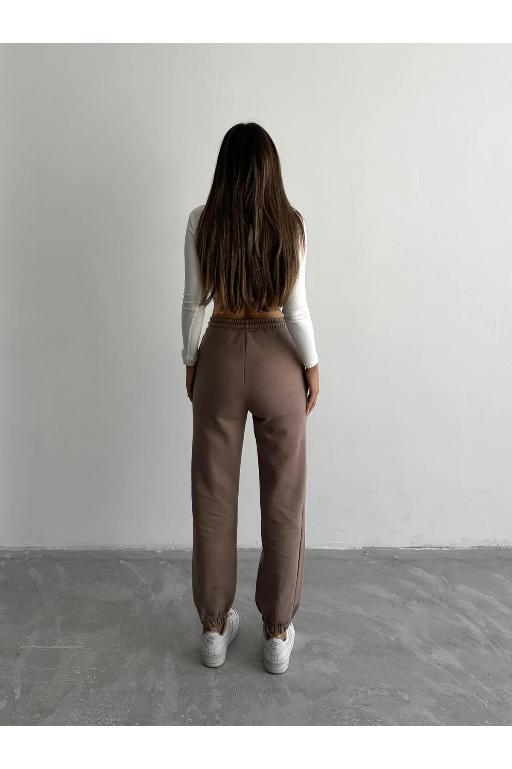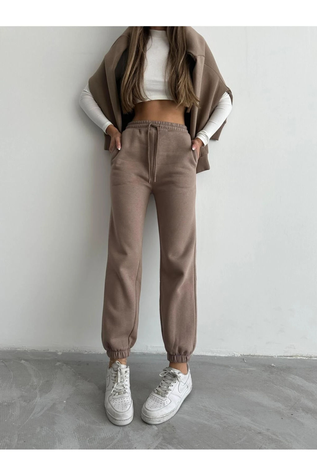 3 iplik şardonlu paça lastikli eşofman vizon is001