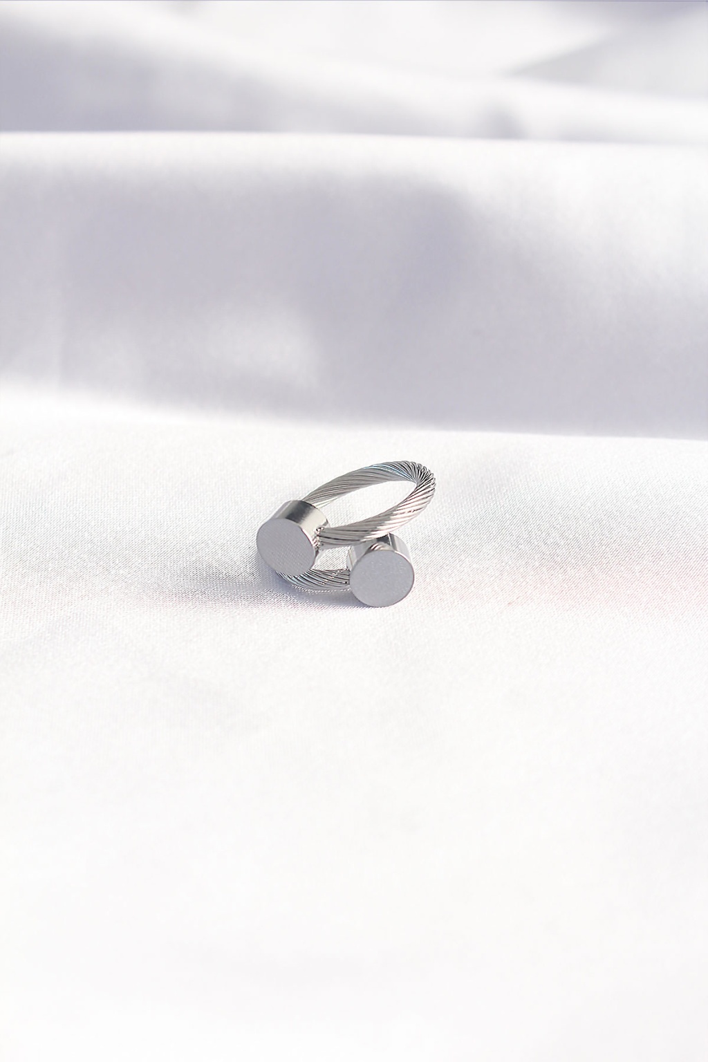 316L Çelik Gümüş Renk Oval Aksesuarlı Burgu Model Bileklik ve Yüzük Kombini