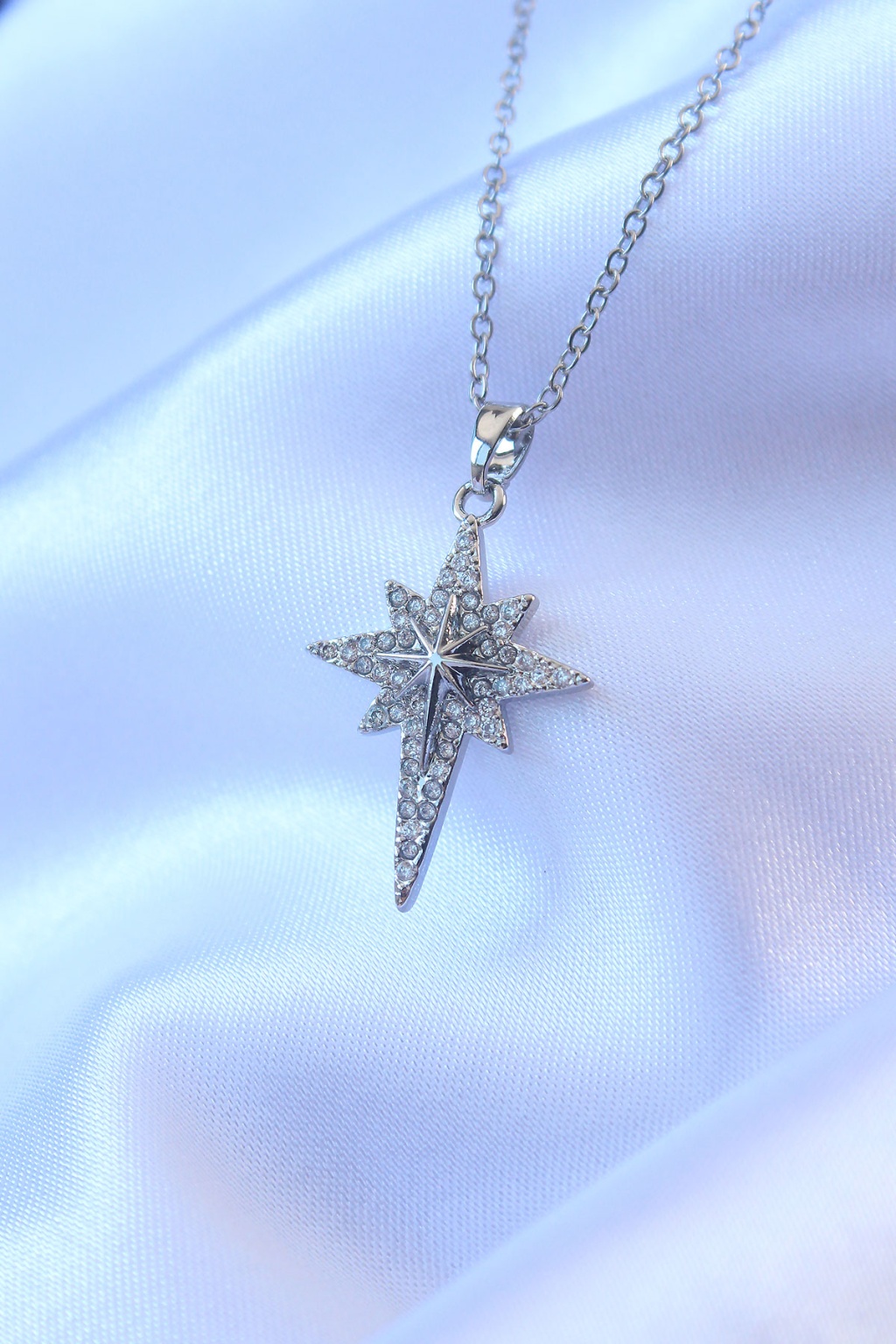 316L Çelik Gümüş Renk Zirkon Taşlı Kutup Yıldızı Model Kolye