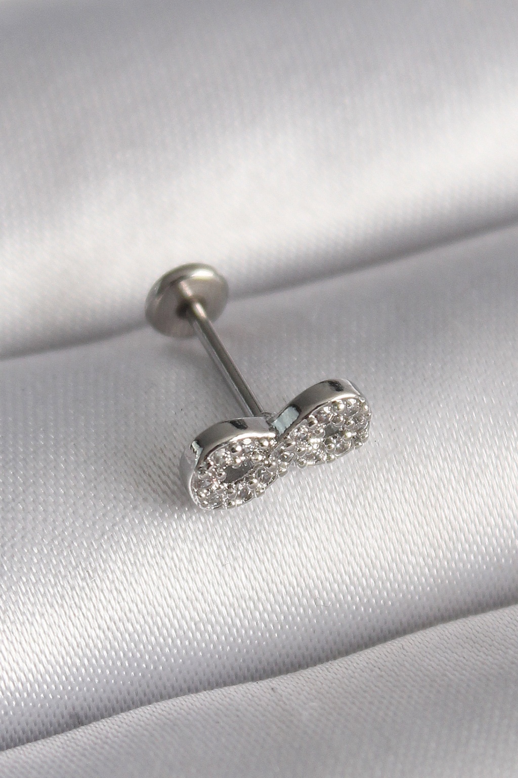 316L Çelik Gümüş Renk Zirkon Taşlı Sonsuzluk Model Tragus Piercing