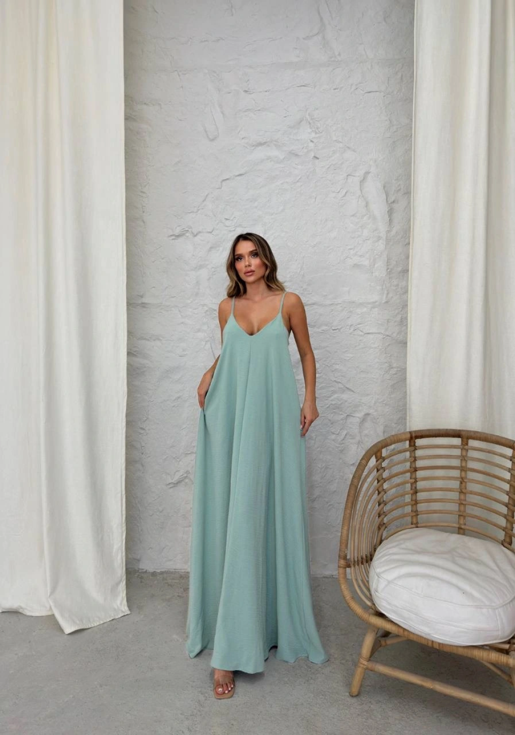 Aerobin uzun elbise çağla yeşili pt