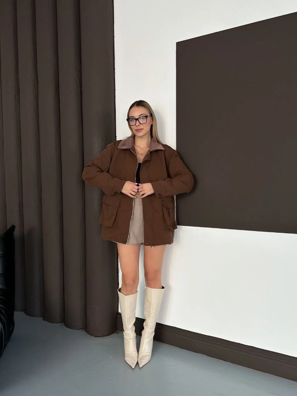 Kalpli peluş ceket içi astarlı siyahbeyaz