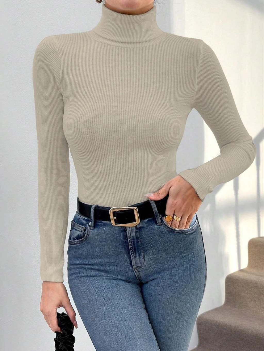 Balıkçı yaka dar kesim kaşkorse kazak siyah w3103