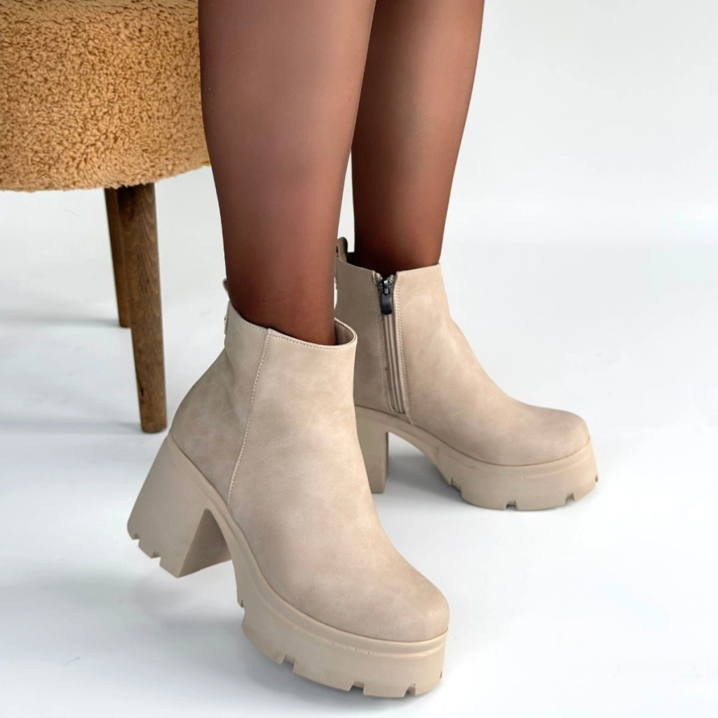 Linma Bej Nubuk Bağcıklı Topuklu Bot