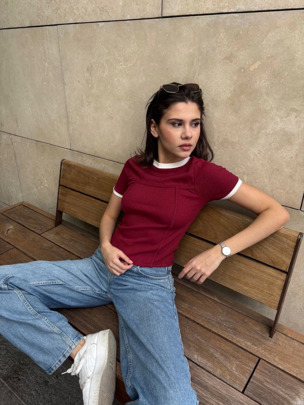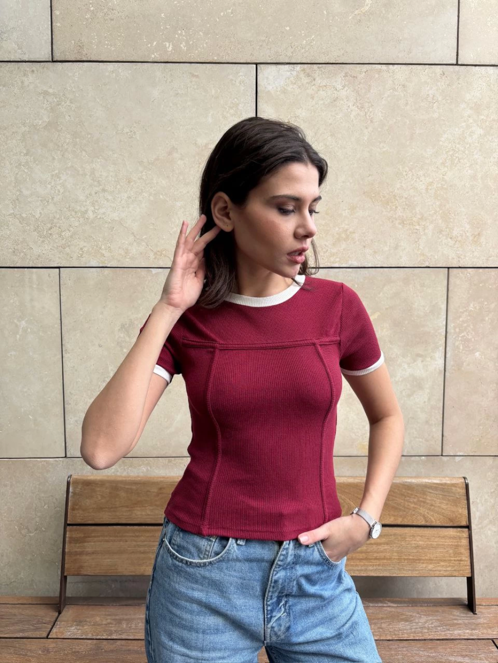 Kadın turuncu bisiklet yaka gold düğmeli ottoman bluz s2310