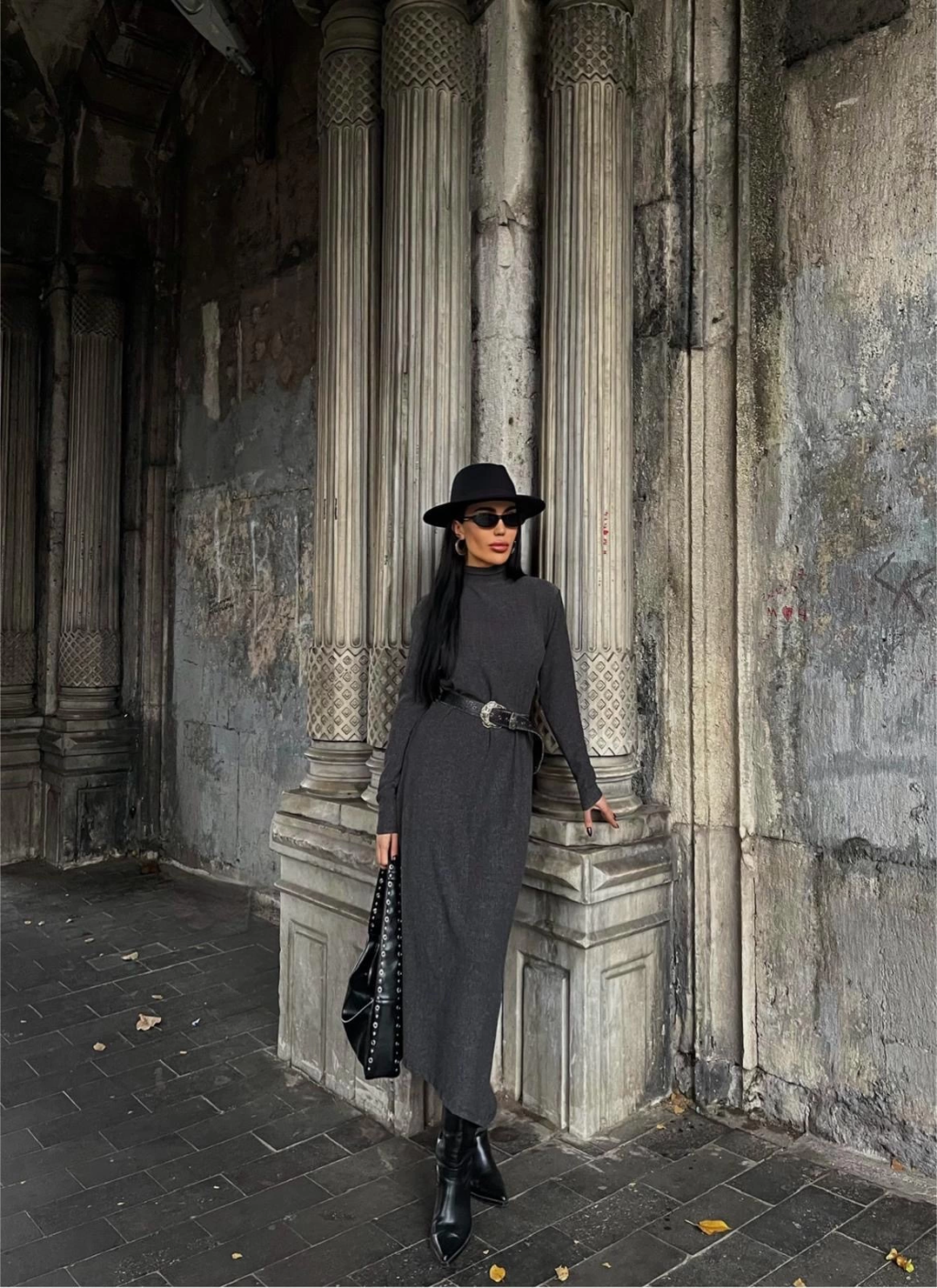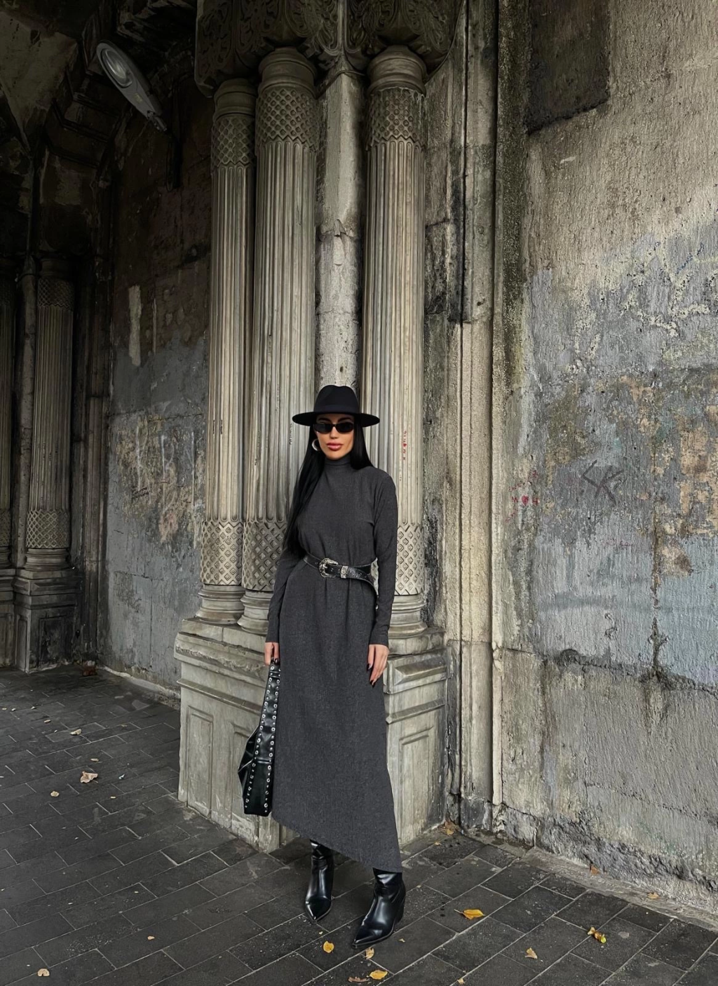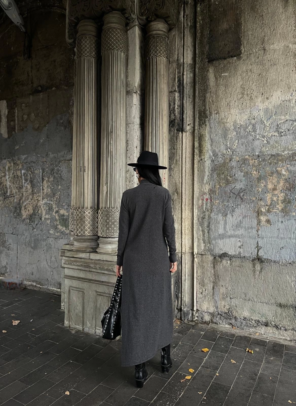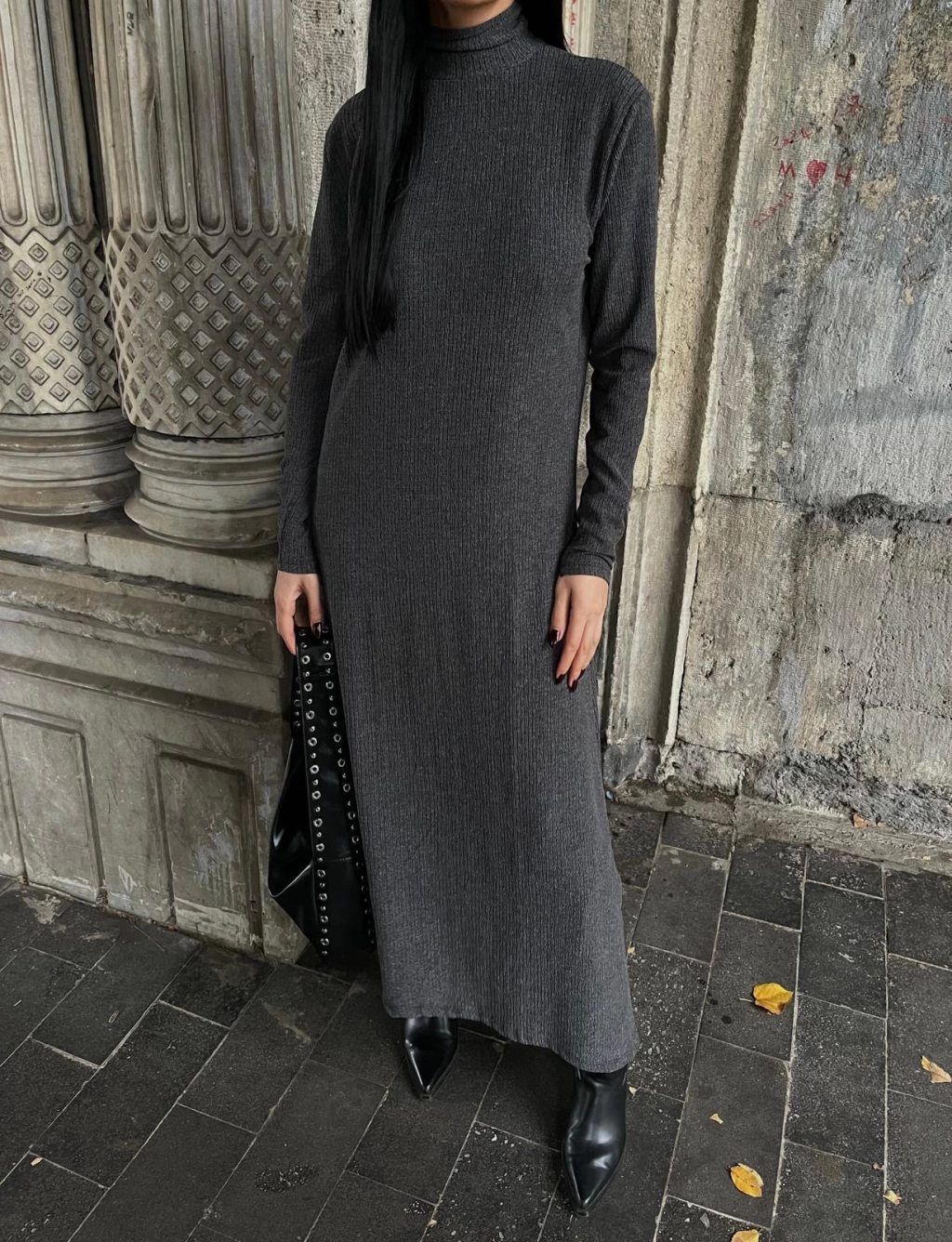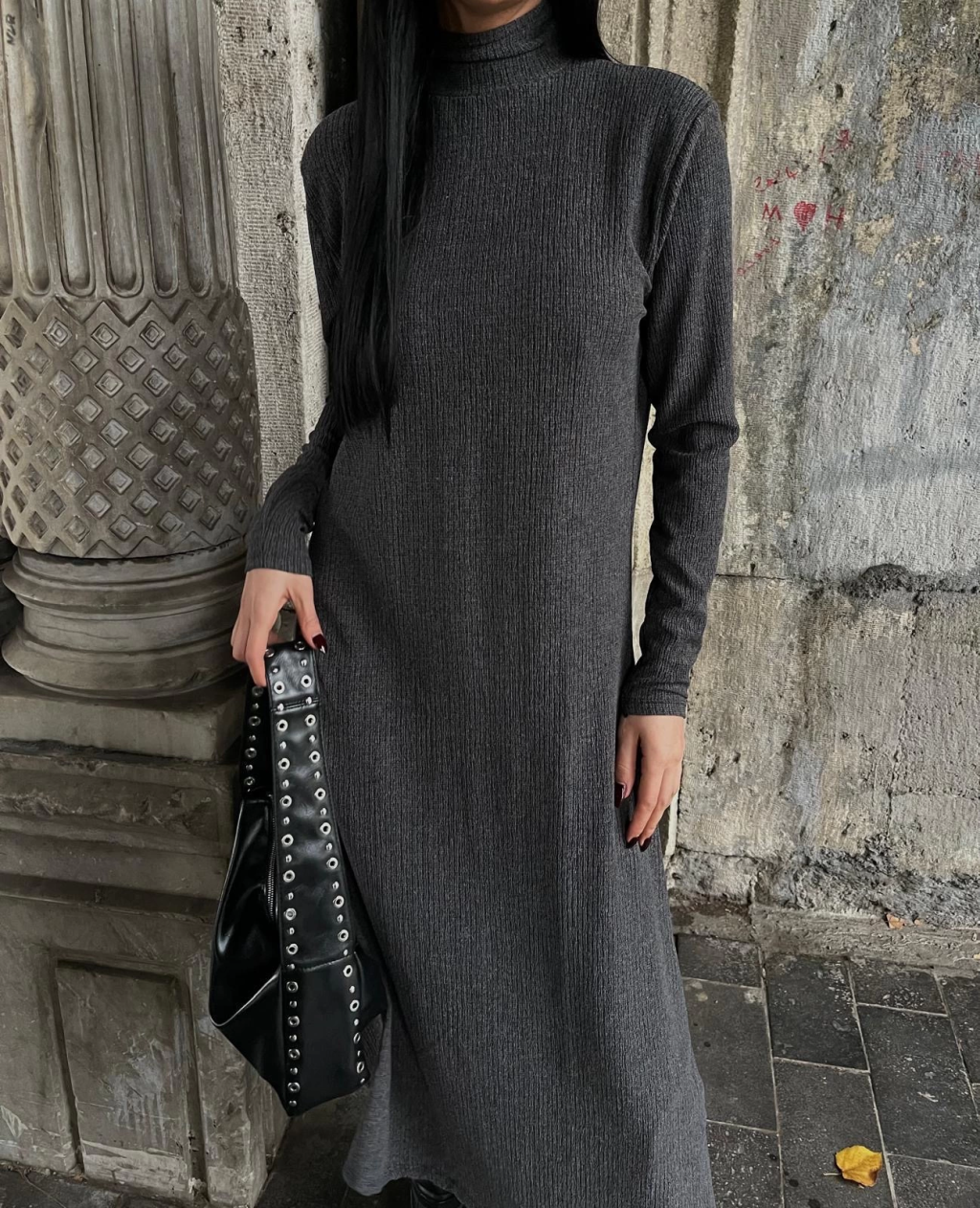 Fermuar detaylı fitilli şardonlu elbise siyah a3178