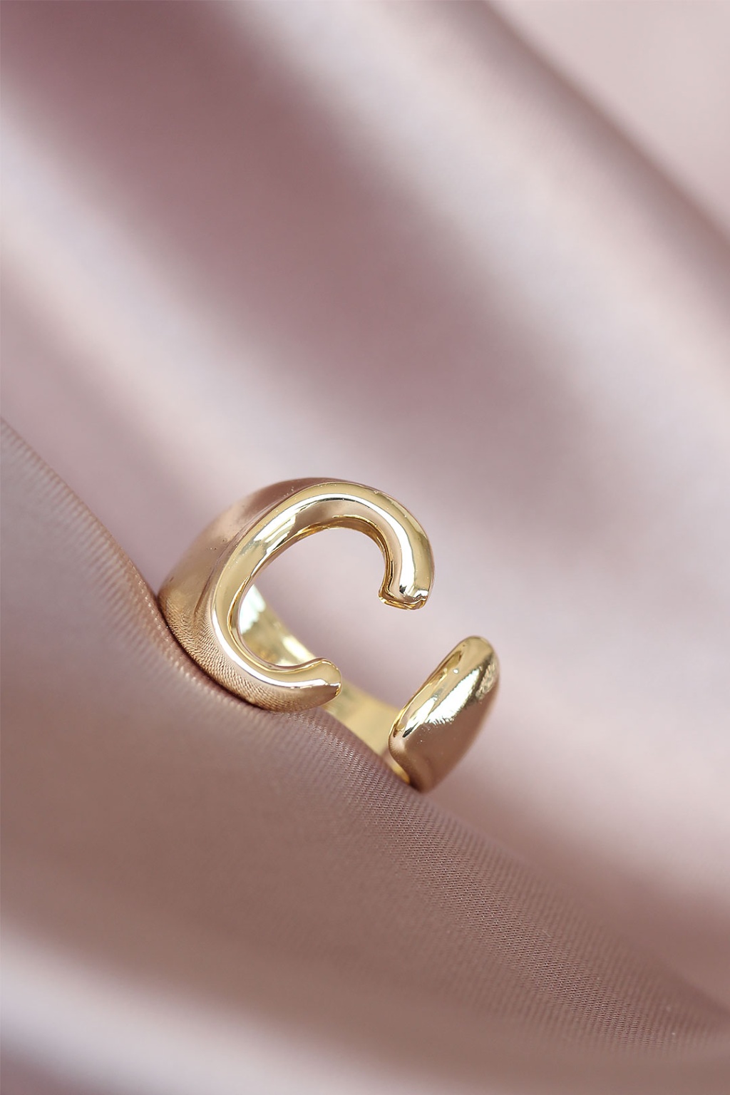 C Harfli Altın Renk Ayarlamalı Metal Kadın Yüzük
