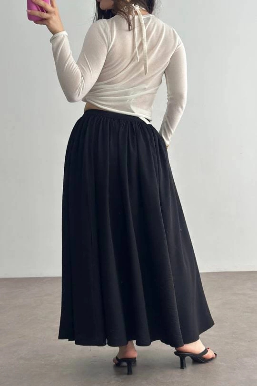 Müslin kumaş keten uzun etek antrasit pt