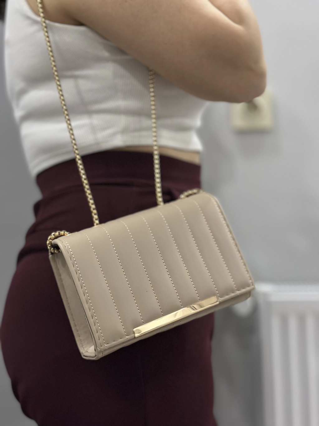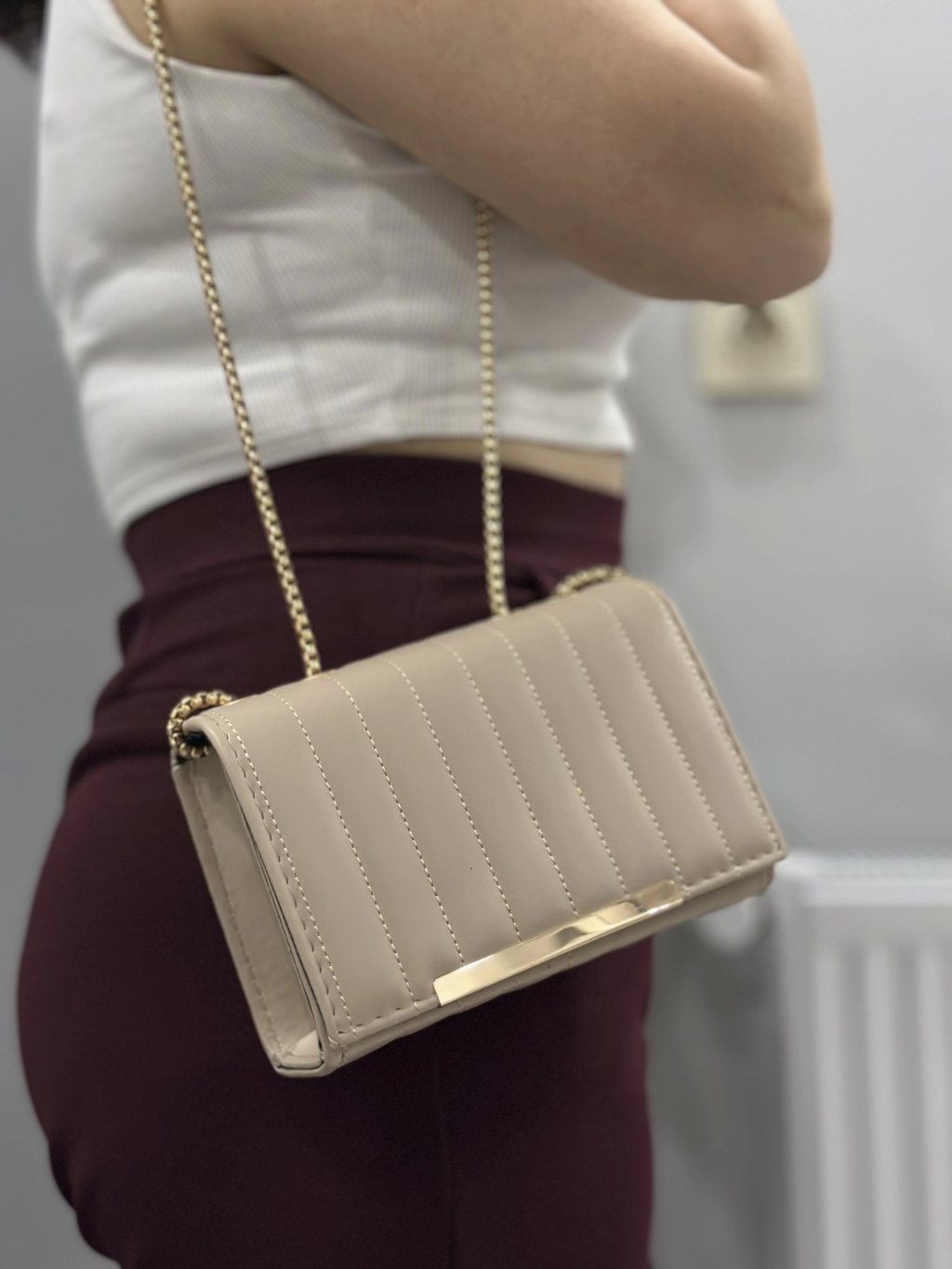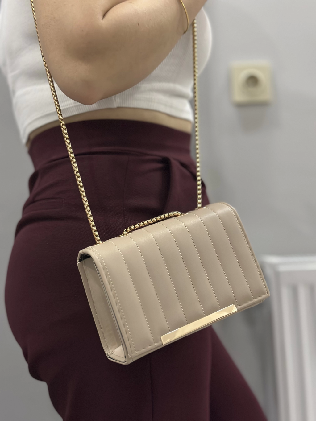 Kapaksız kapitone bej cilt çanta
