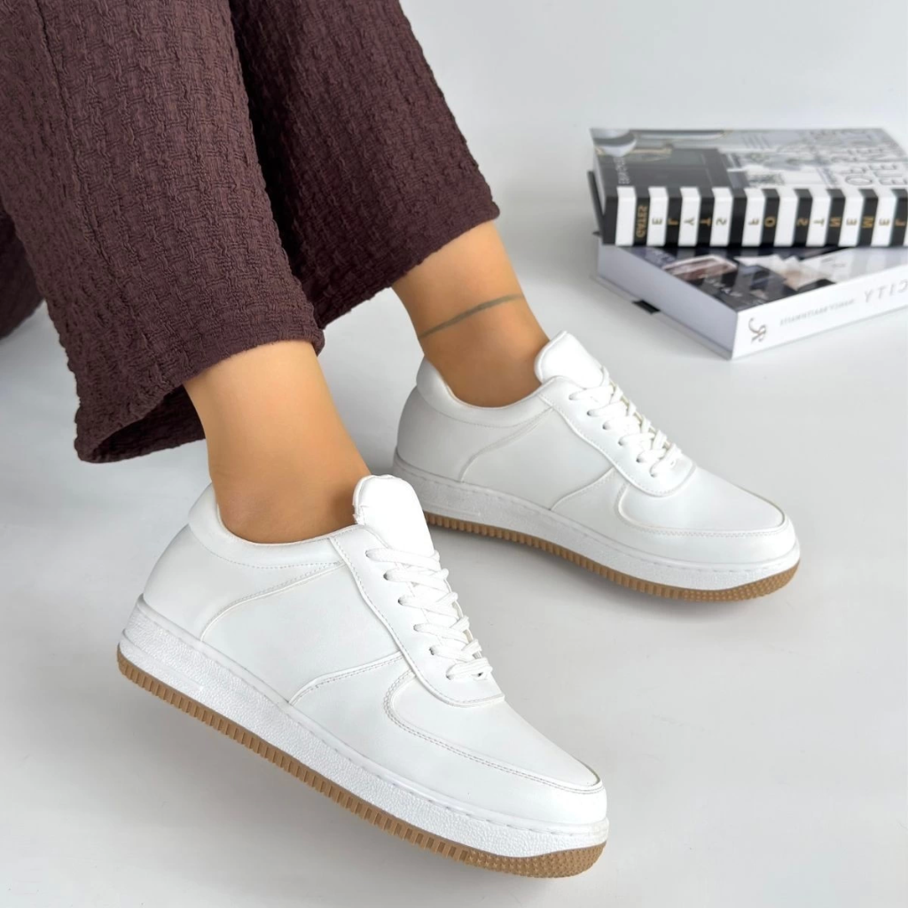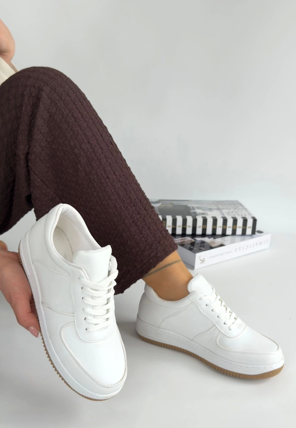 Monya Beyaz Cilt Bağcıklı Spor Ayakkabı