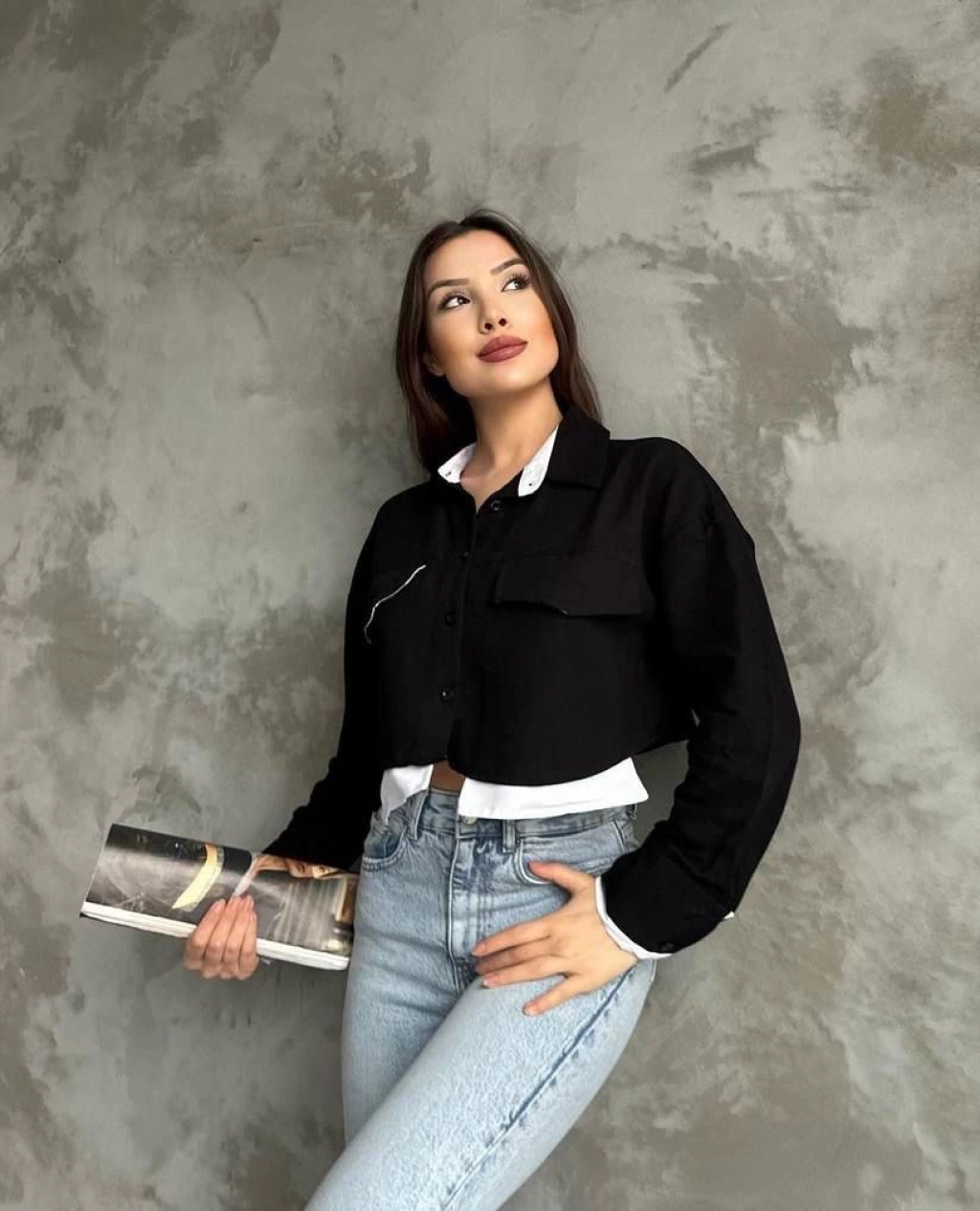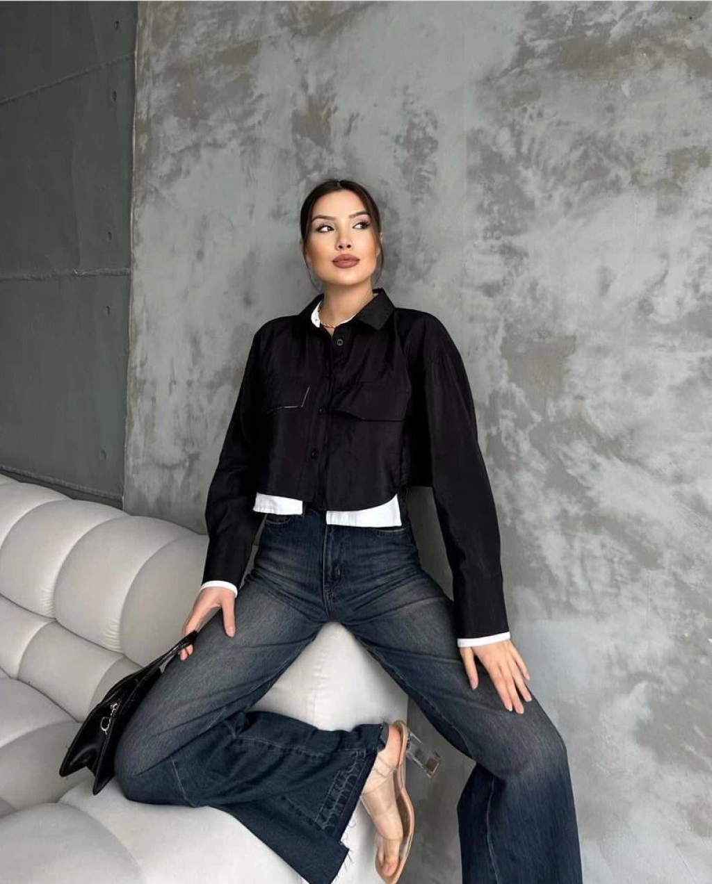 Çift renkli kısa gömlek siyahbeyaz s4021