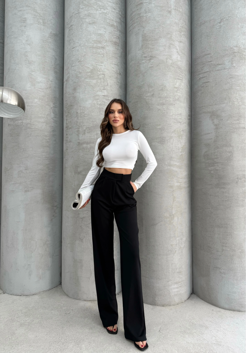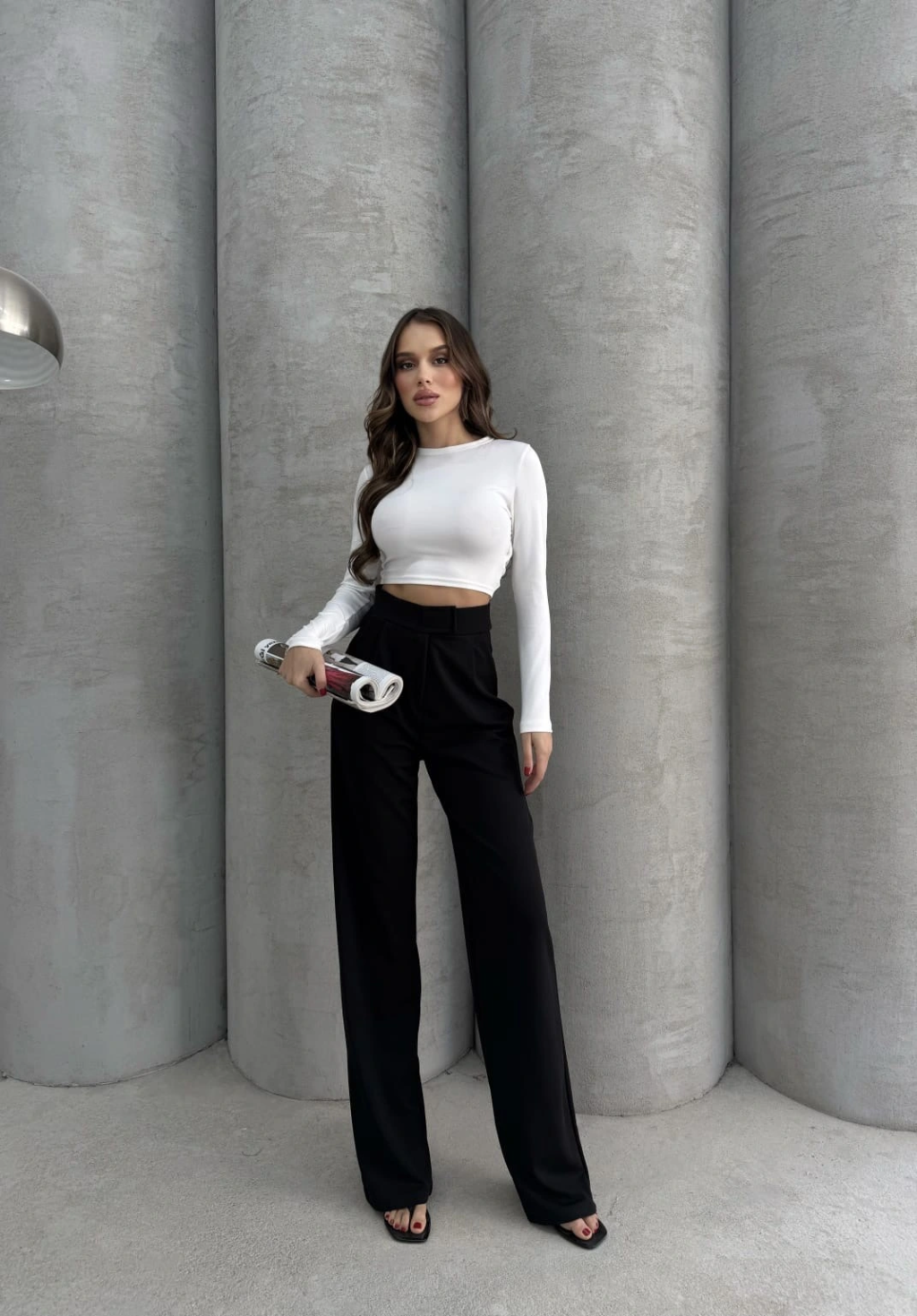 3 iplik şardonlu palazzo pantolon füme md64