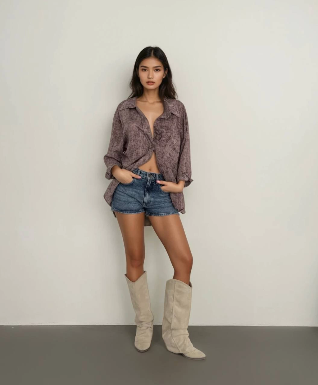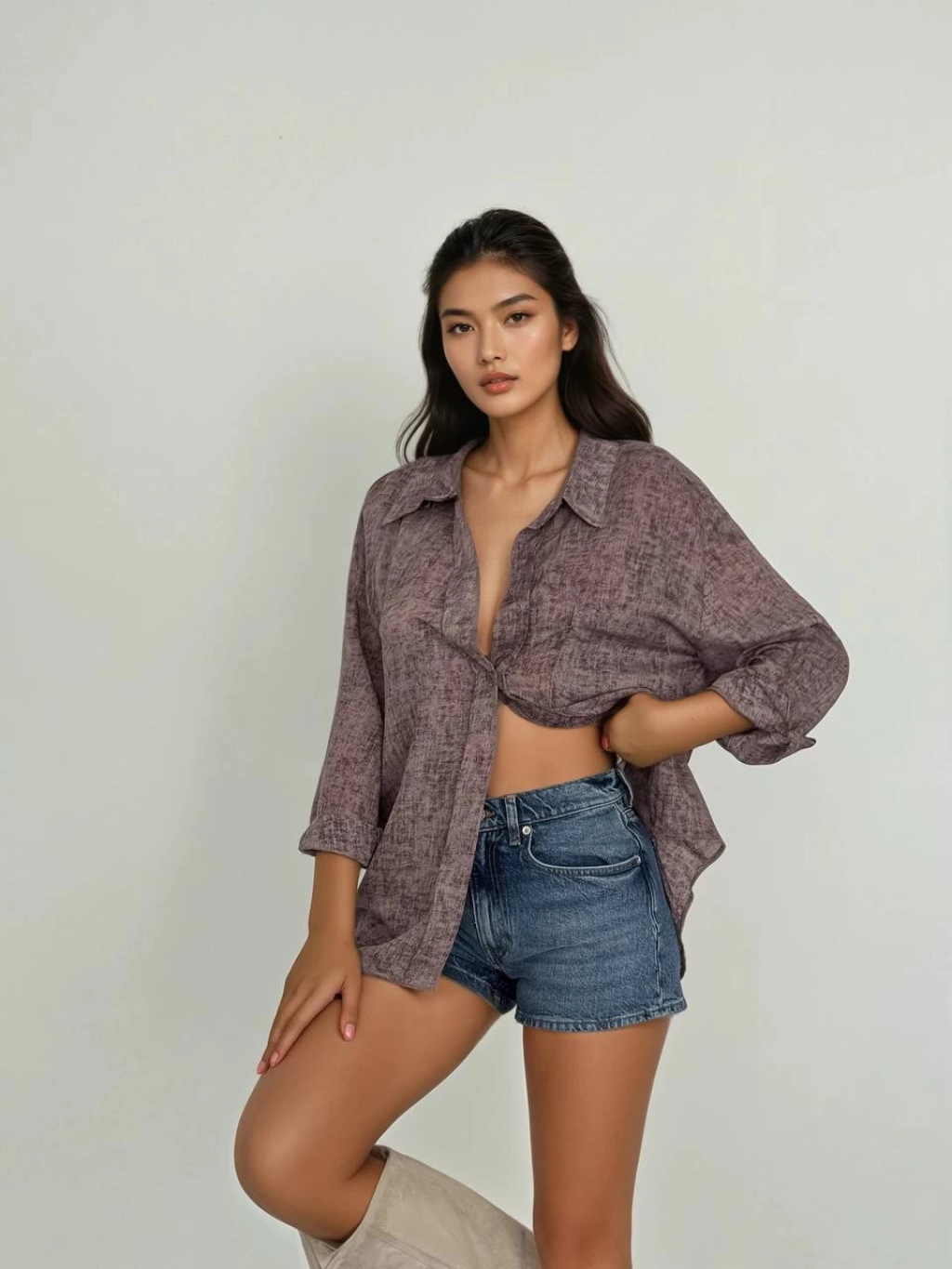 Tek cepli müslin gömlek bej pt
