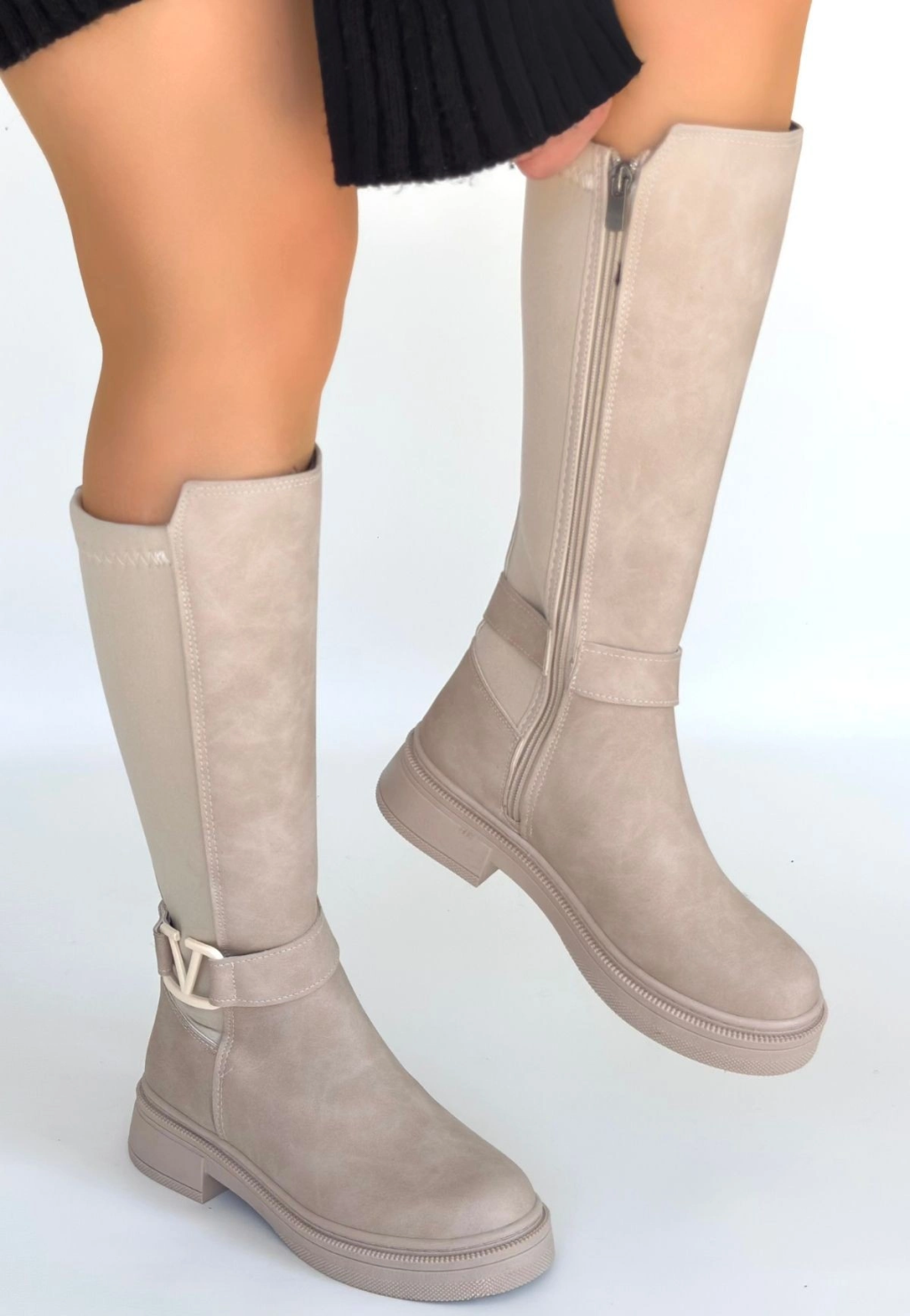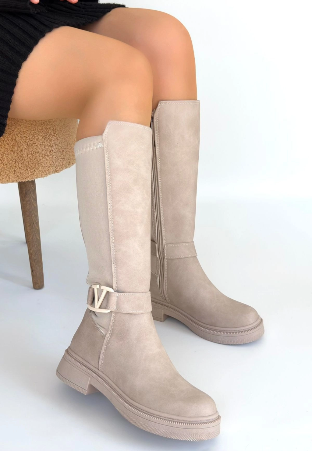 Tiyan Bej Cilt Topuklu Çizme