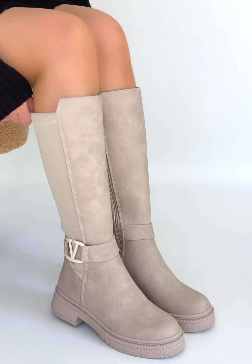İwon Bej Süet Körüklü Çizme