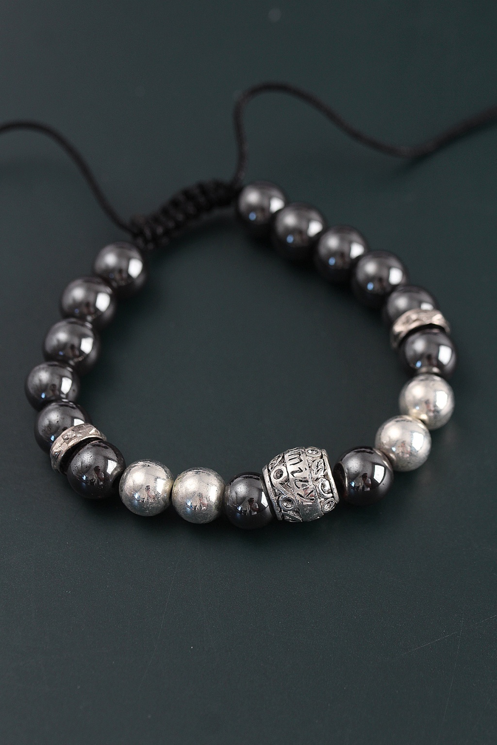 Doğal Taş Family Model Gümüş Ve Füme Renk Asansörlü Erkek Bileklik