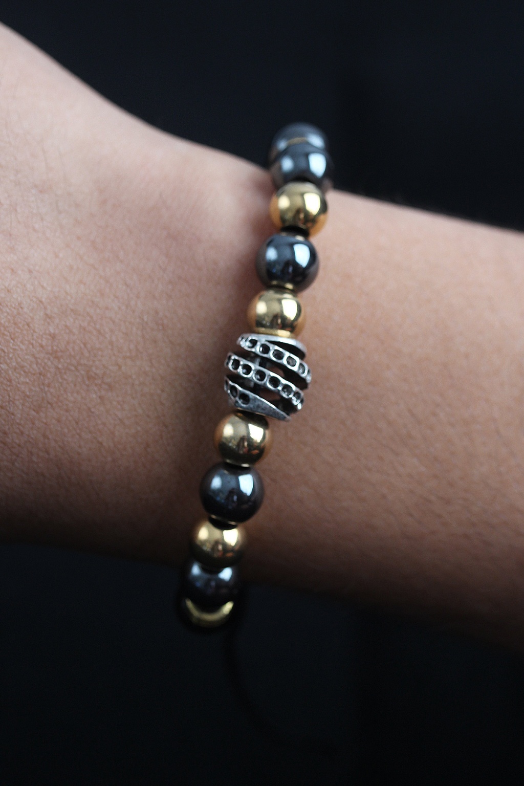 Doğal Taş Sarmal Model Gold Ve Füme Renk Asansörlü Erkek Bileklik