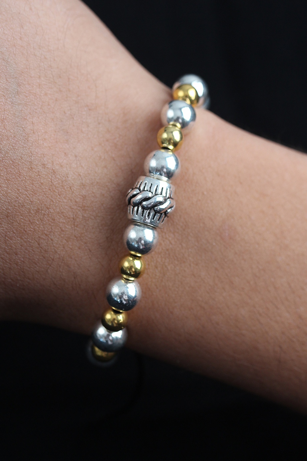 Doğal Taş Sarmal Model Gold Ve Gümüş Renk Asansörlü Erkek Bileklik