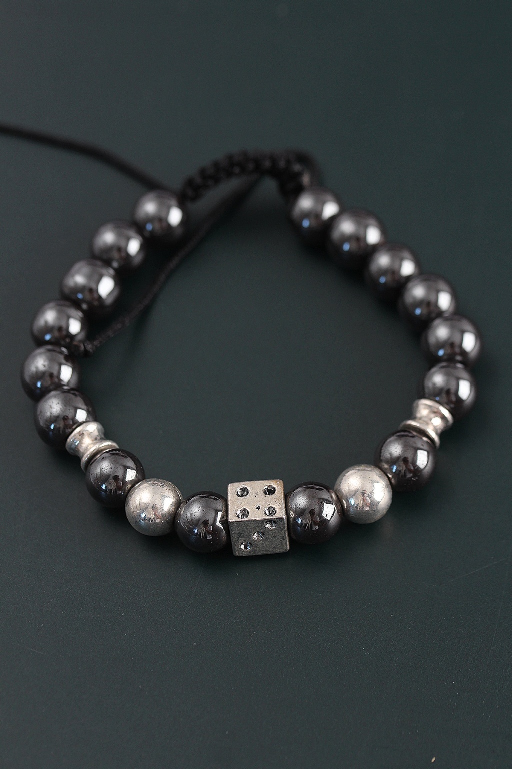 Doğal Taş Zar Model Gümüş Ve Füme Renk Asansörlü Erkek Bileklik