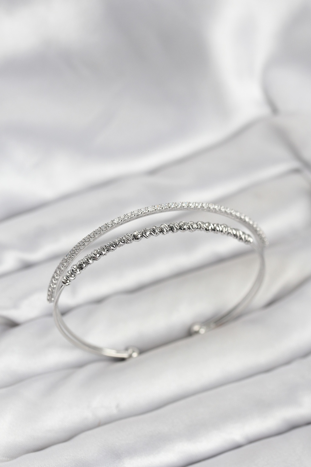 Dorika Model Pirinç Gümüş Renk Kadın Bileklik