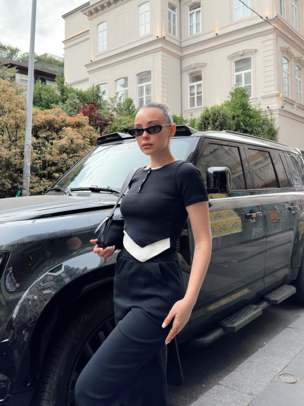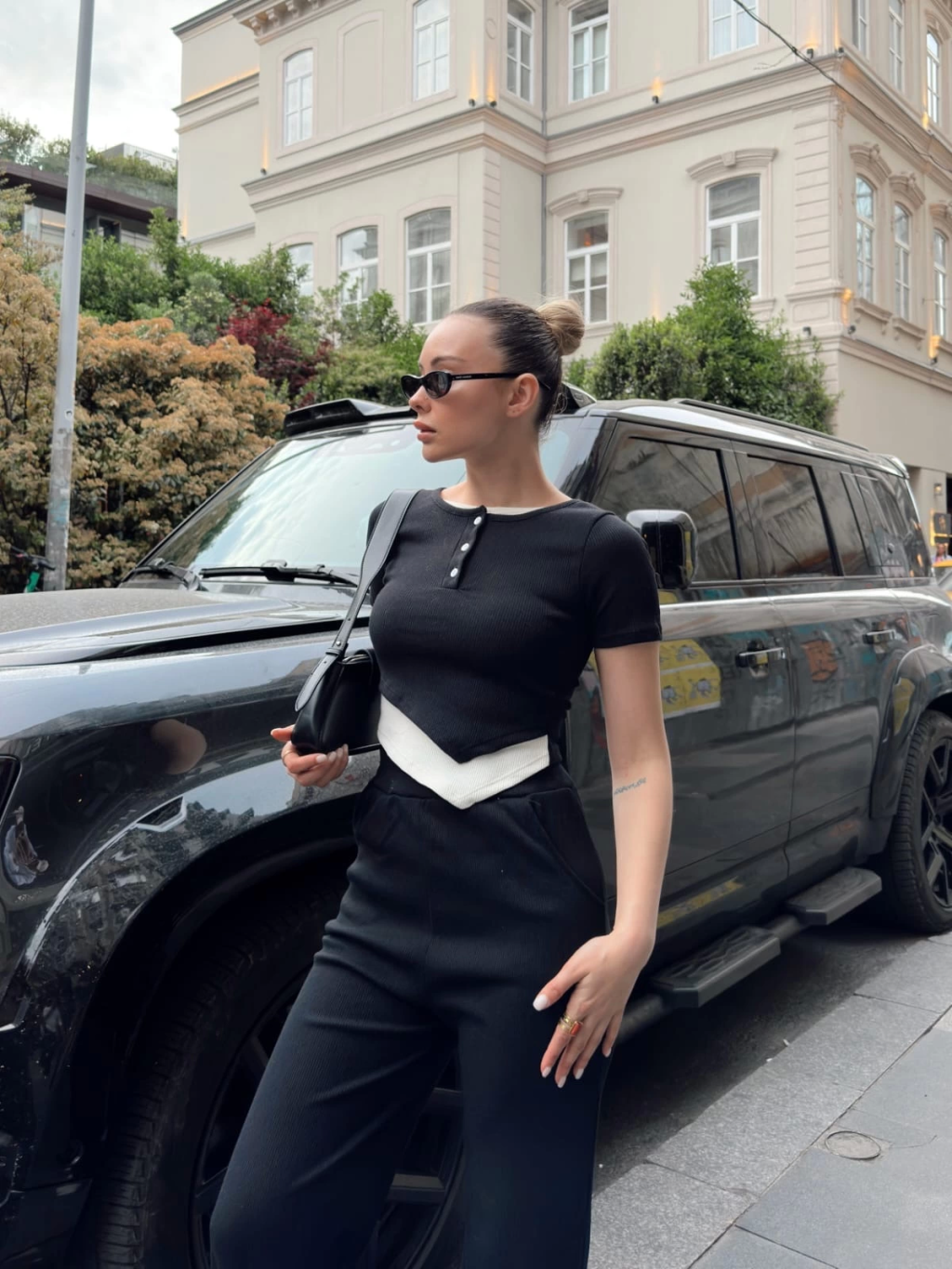 Düğme yakalı siyah alt üst takım s3943