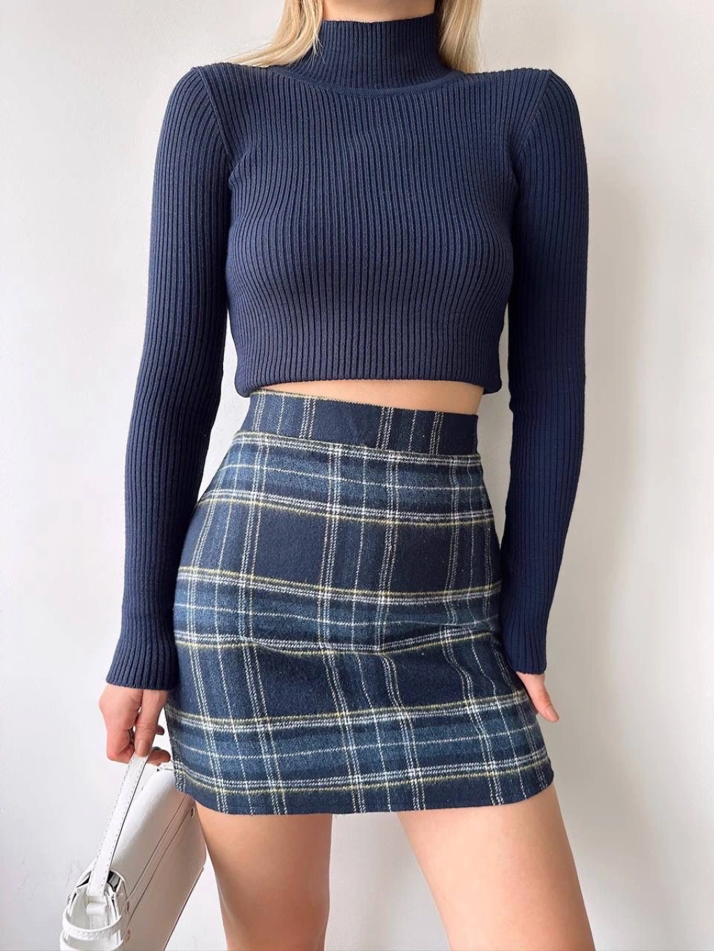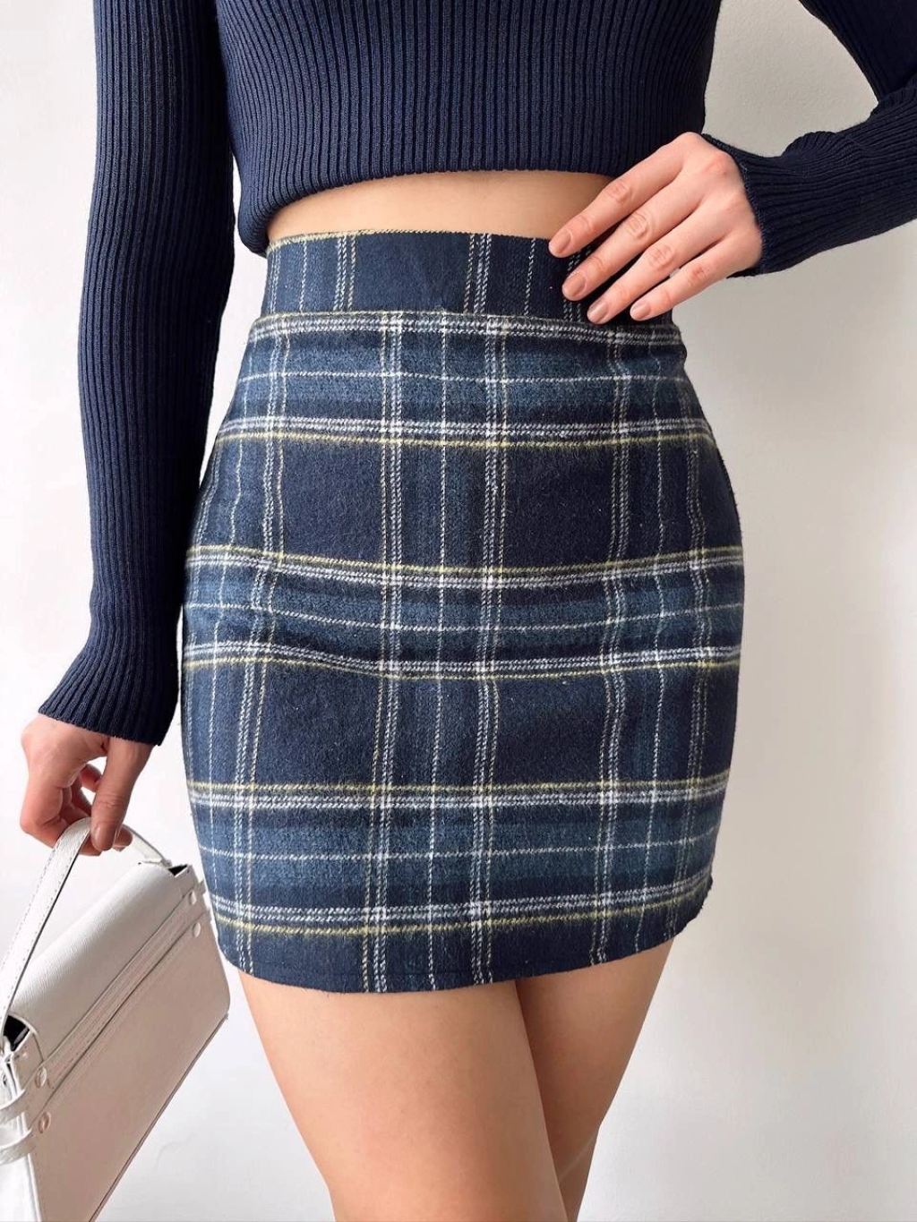 Ekoseli kaşe etek lacivert hf