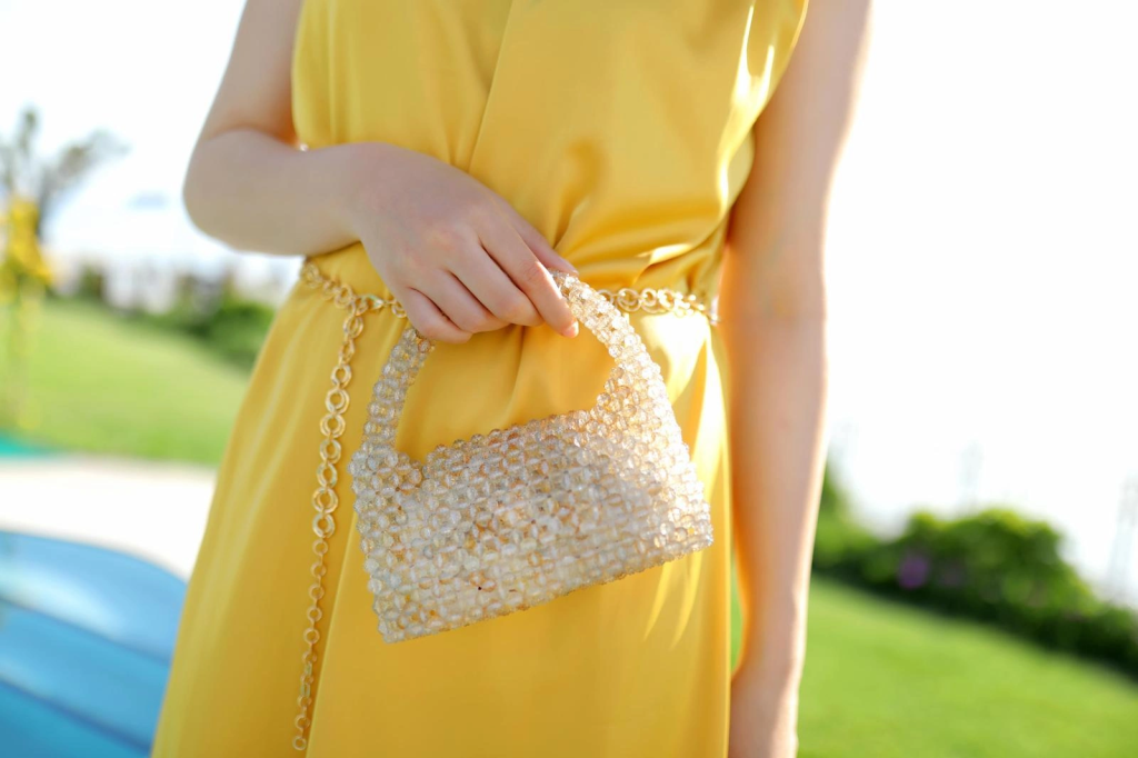 El yapımı incili el çantası kapaklı krem