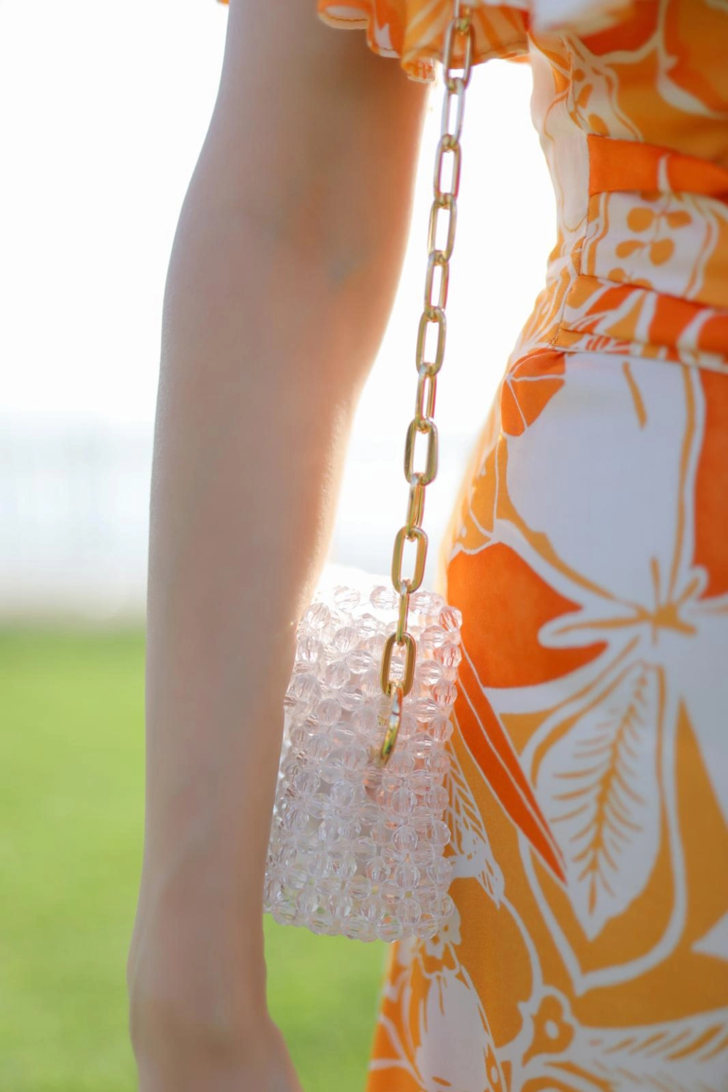 El yapımı zincirli incili çanta beyaz
