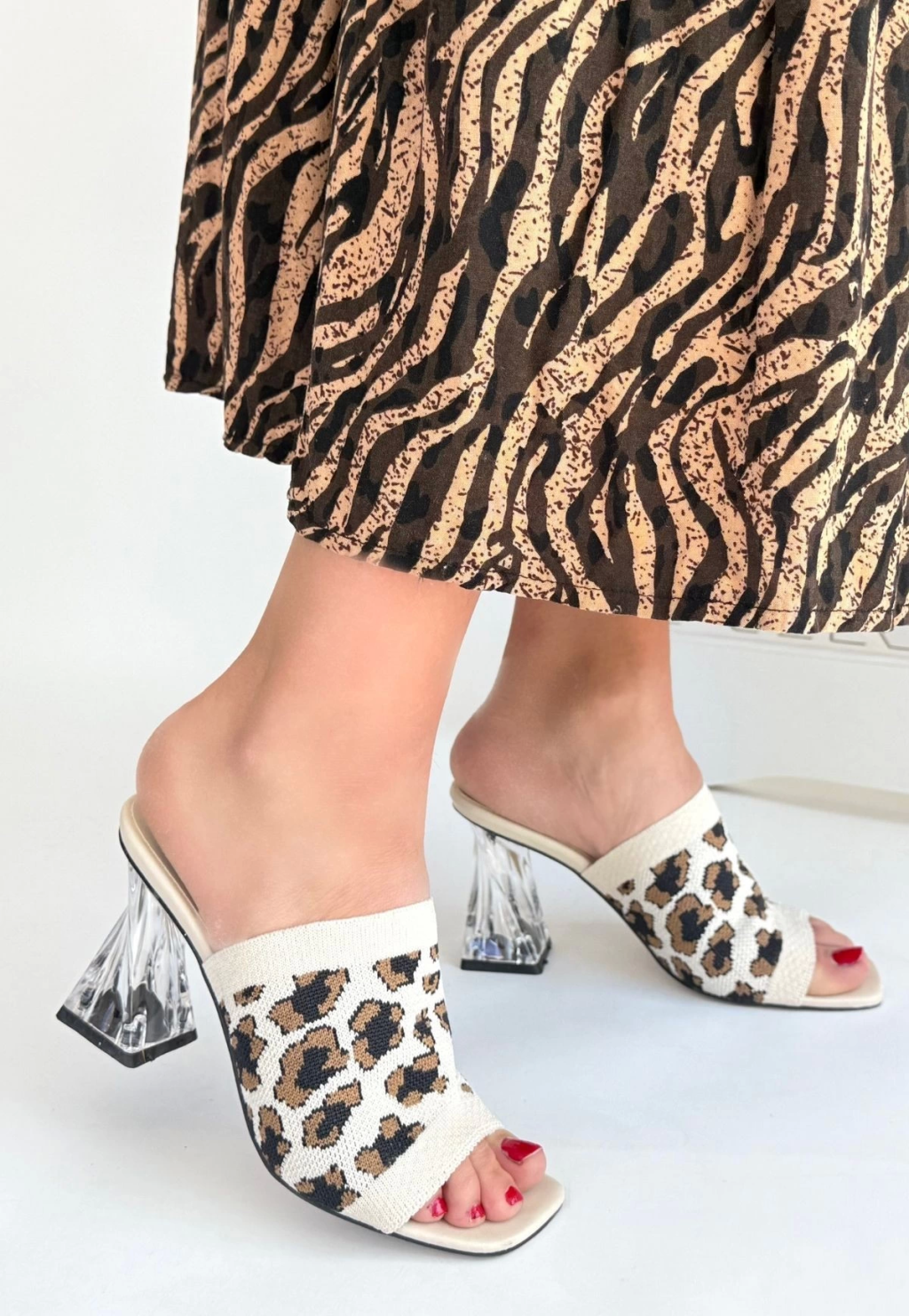 Evra Leopar Triko Topuklu Terlik