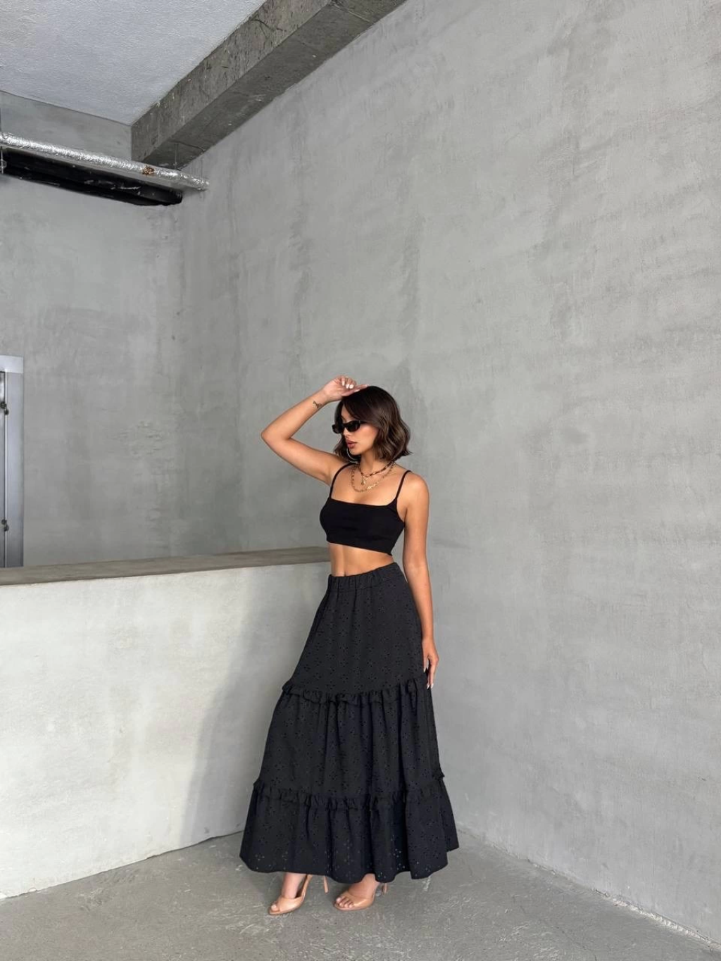 Fırfırlı brodeli astarlı uzun etek siyah s255047