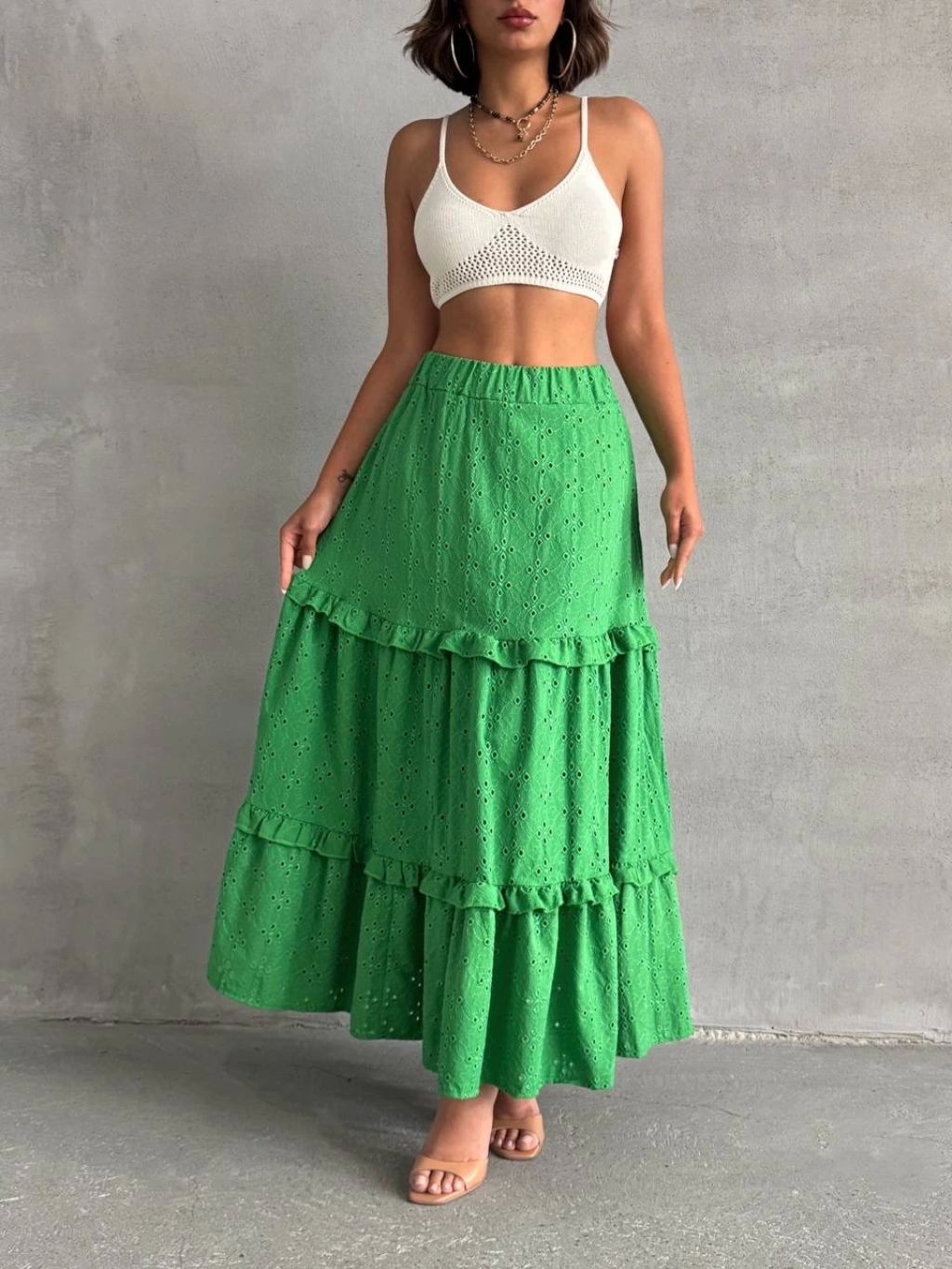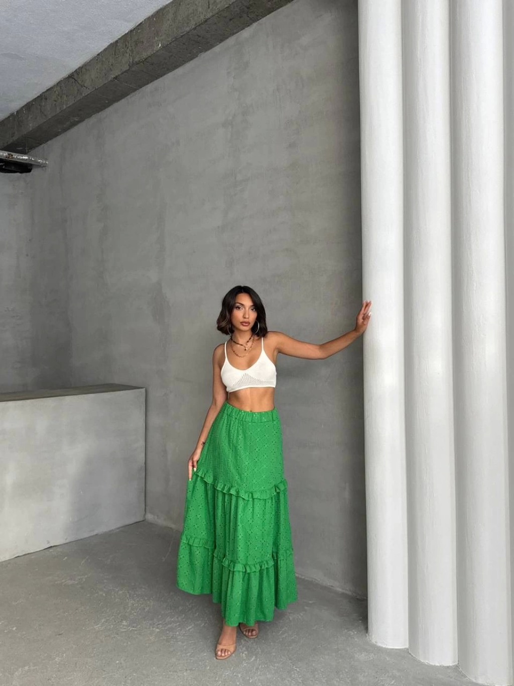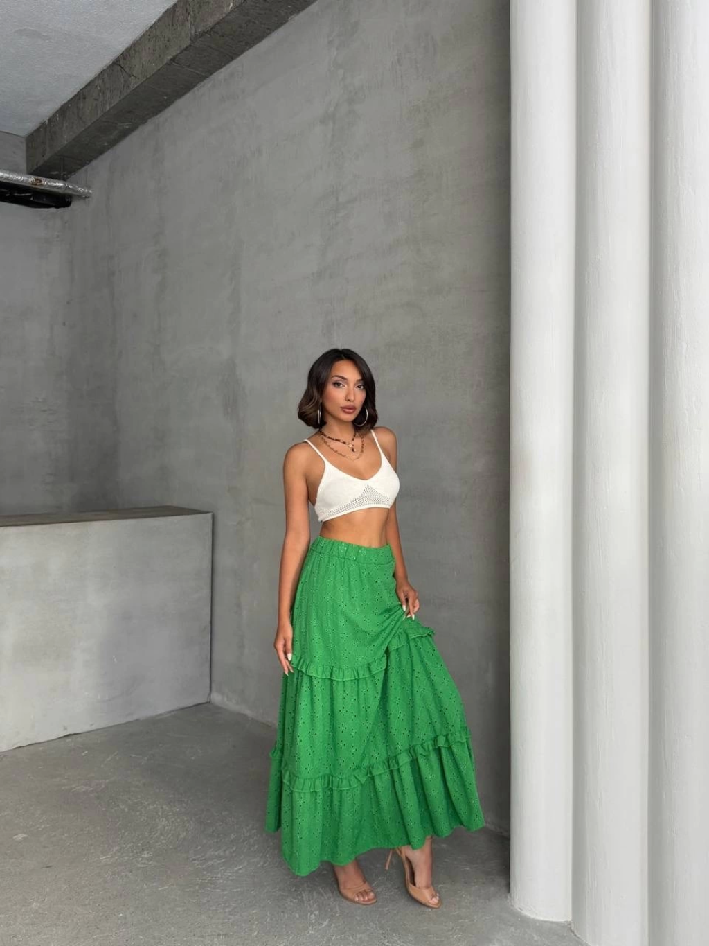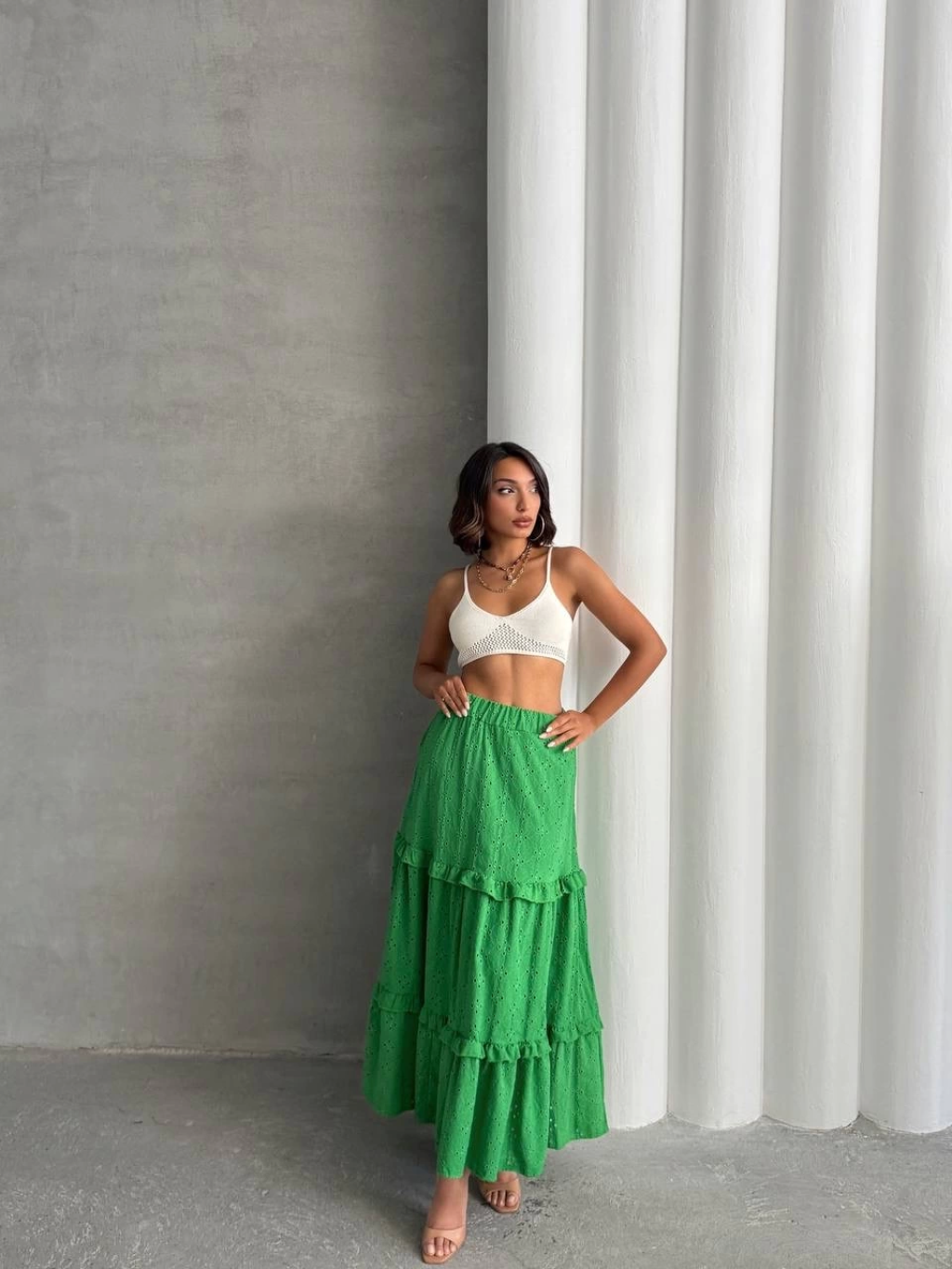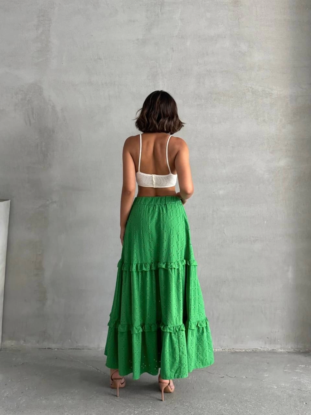 Fırfırlı brodeli astarlı uzun etek yeşil s255047