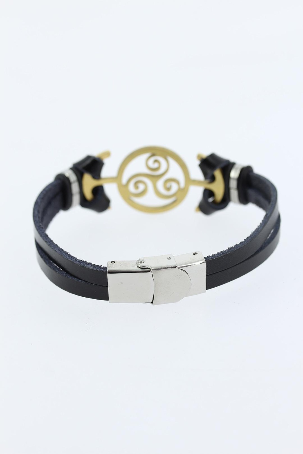 Gold Renk Deniz Çapası Figürlü Metal Aksesuarlı Siyah Renk Deri Erkek Bileklik
