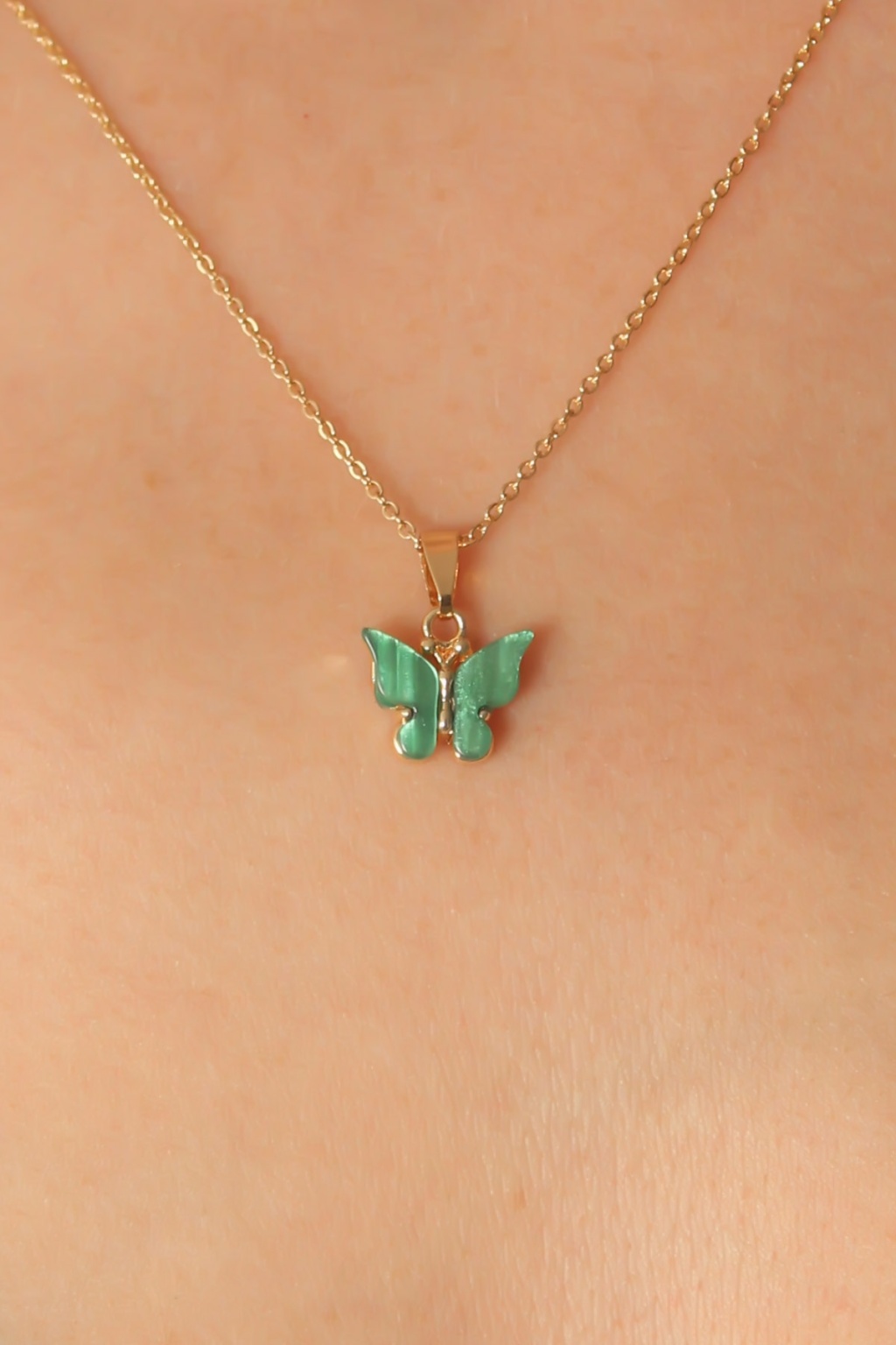 Gold Yeşil Renk Kelebek Figür Kadın Kolye