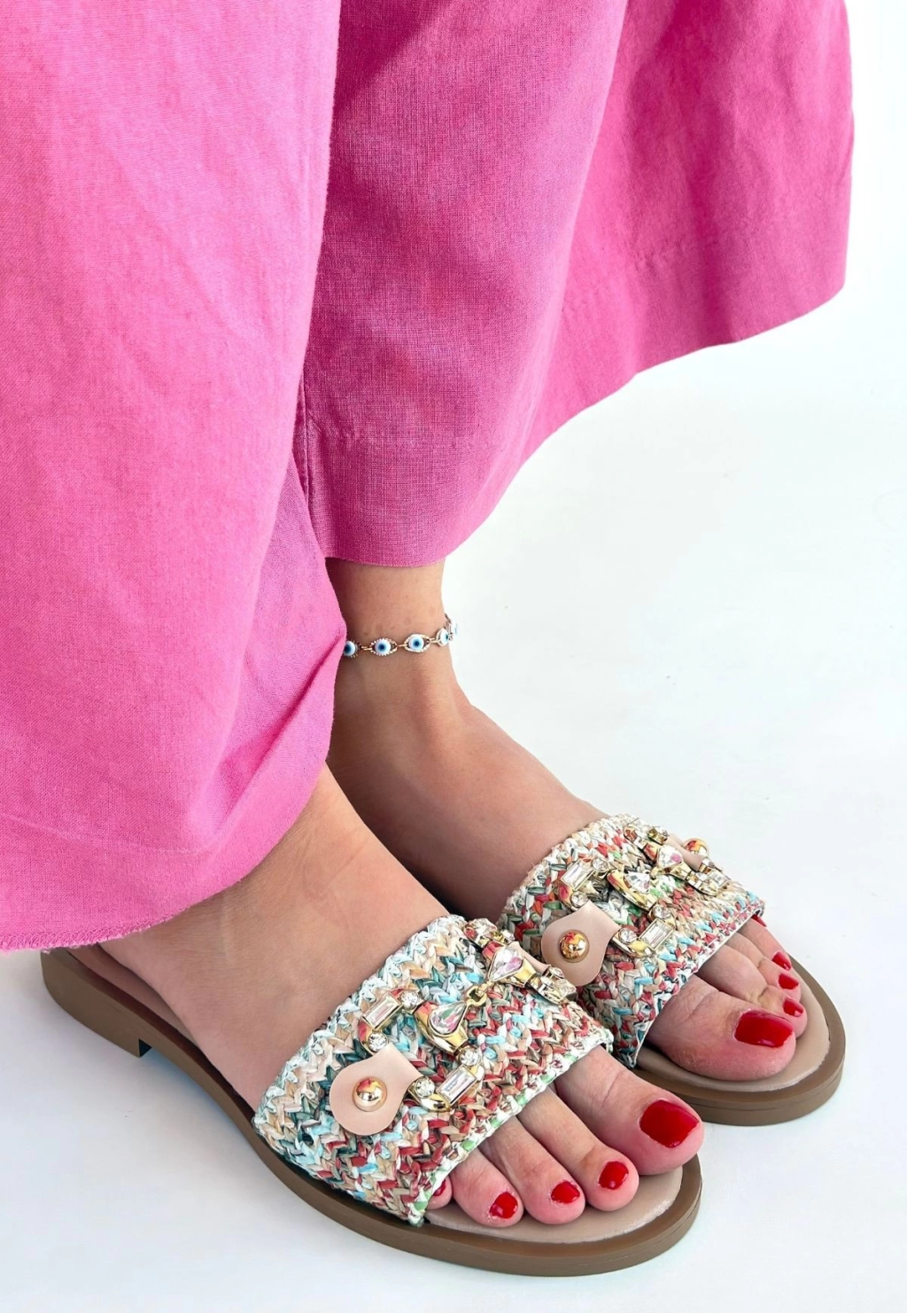 Yenda Renkli Dokumalı Terlik
