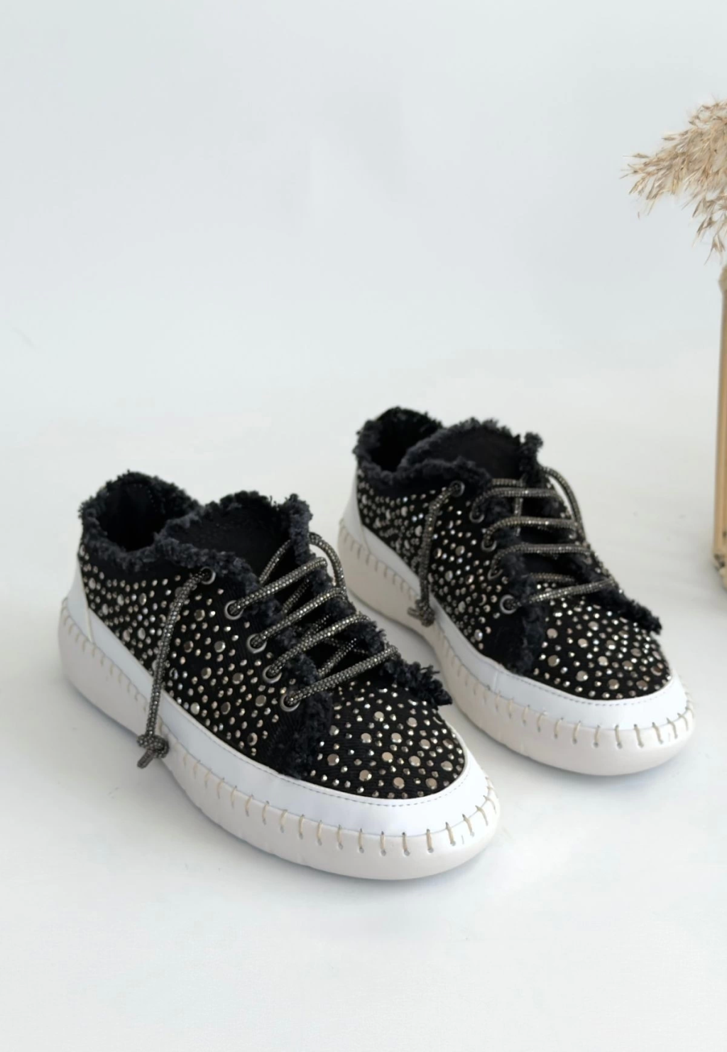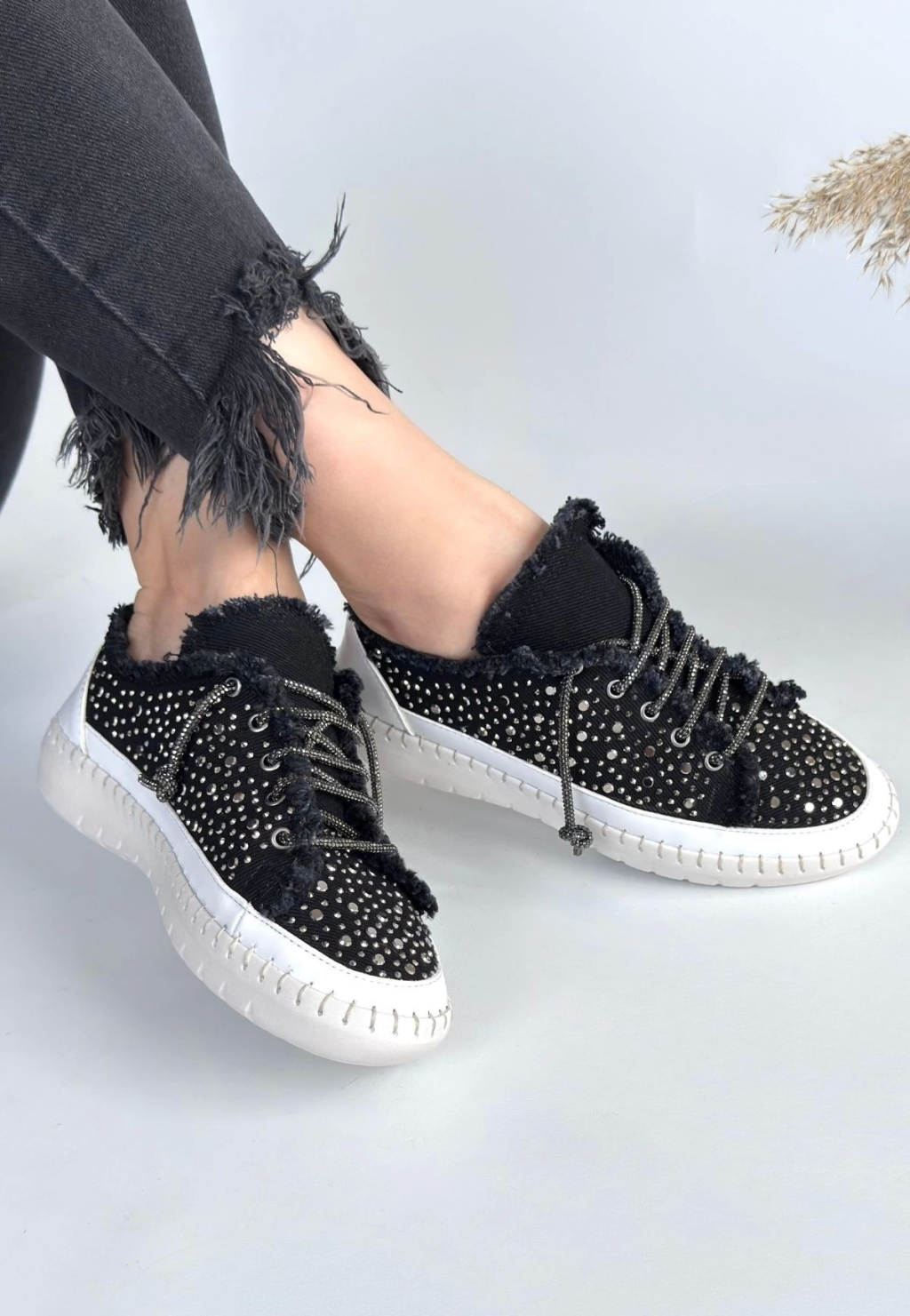 Carin Siyah Keten Bağcıklı Spor Ayakkabı
