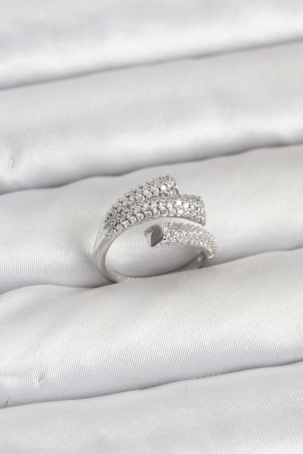Gümüş Renk Zirkon Taşlı Pirinç Kadın Yüzük