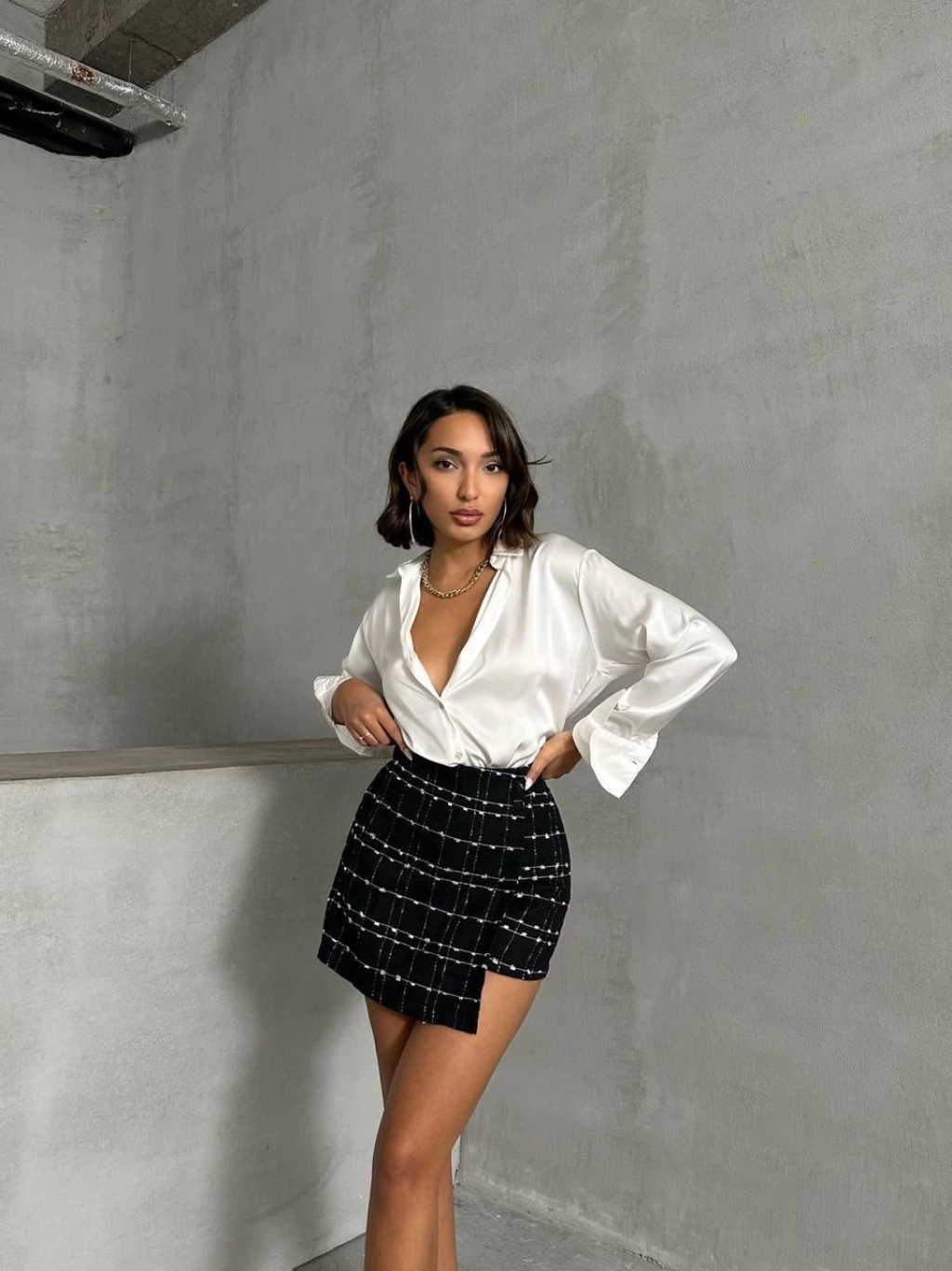 Kapaklı kaşe şort etek siyah beyaz kazayağı h261218