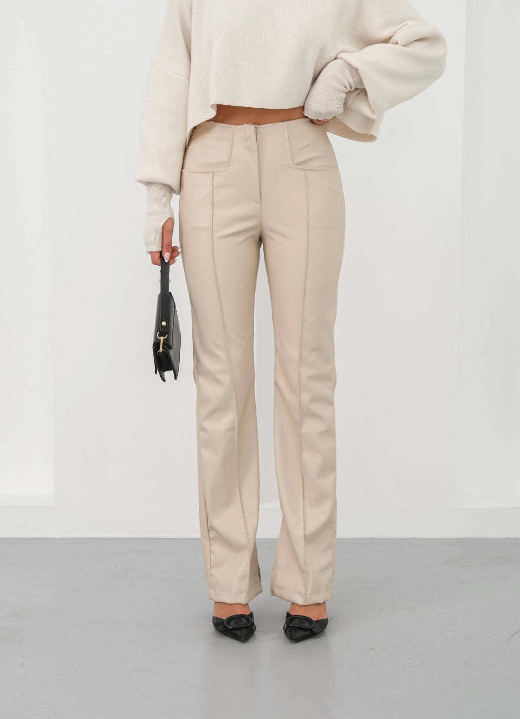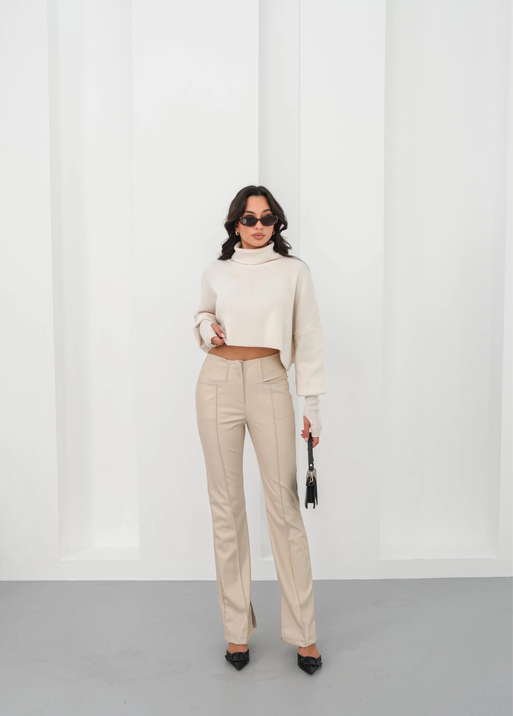 İspanyol yırtmaçlı paça deri pantolon siyah hn