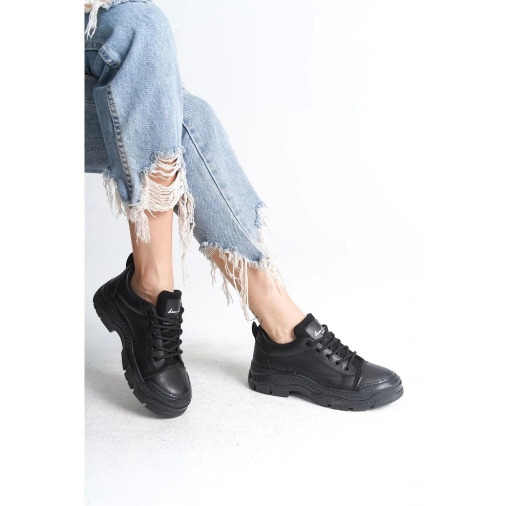 Jule Siyah Cilt Bağcıklı Spor Ayakkabı