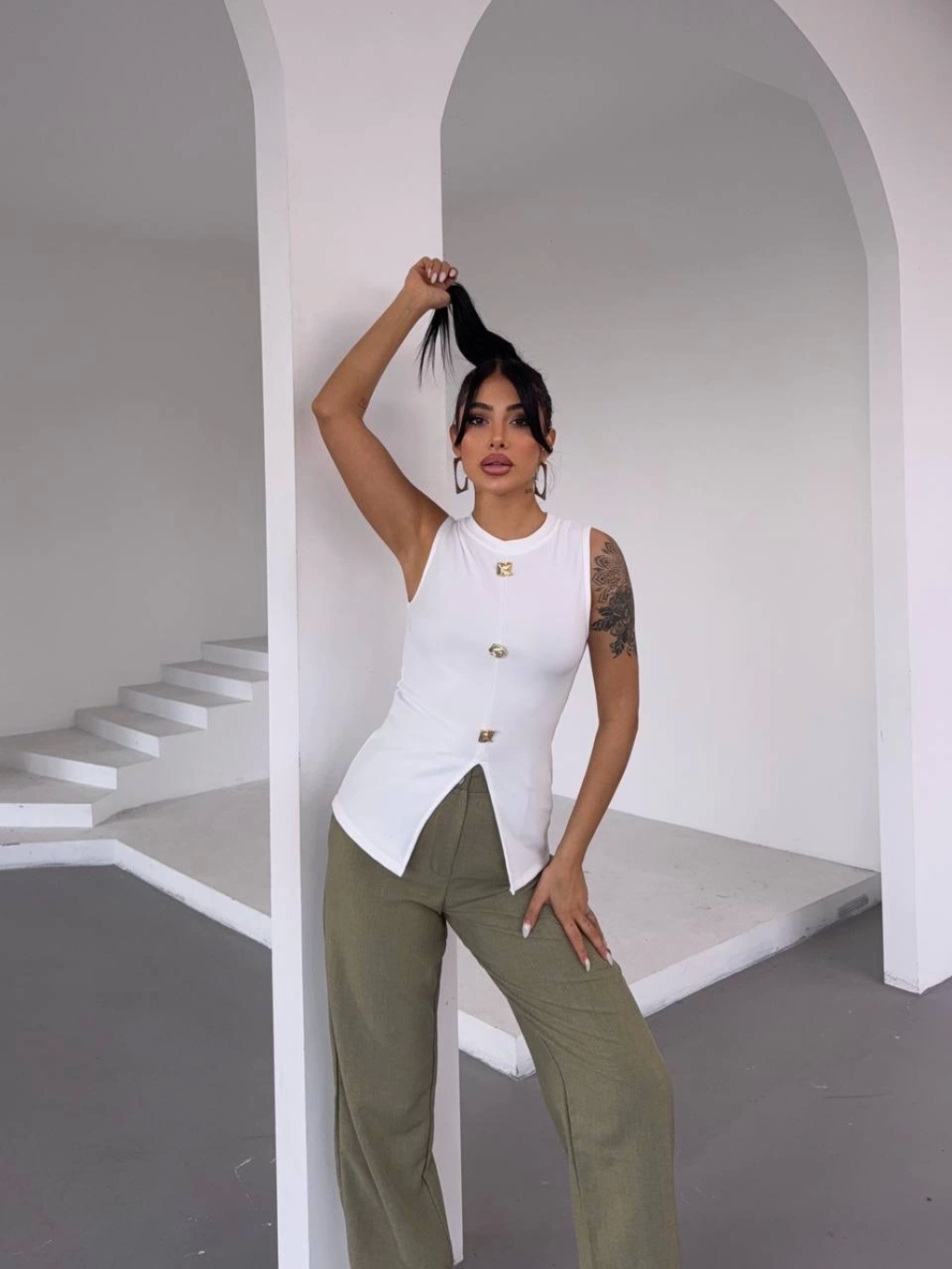 Kadın beyaz bisiklet yaka gold düğmeli ottoman bluz s2310