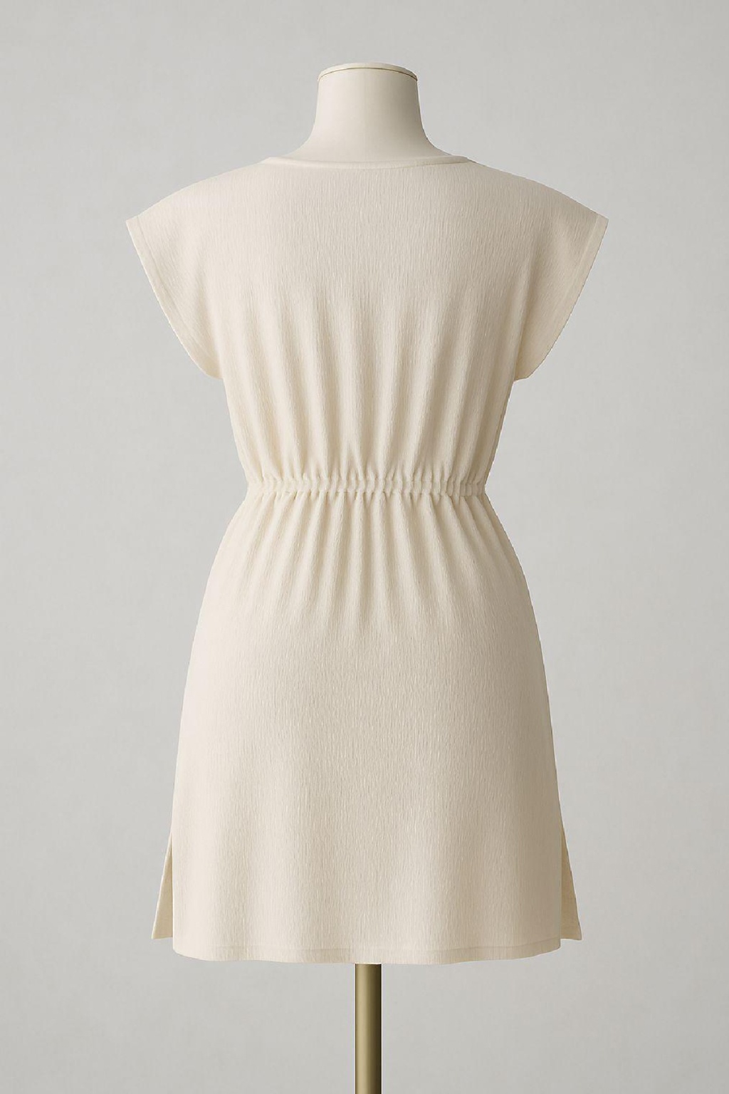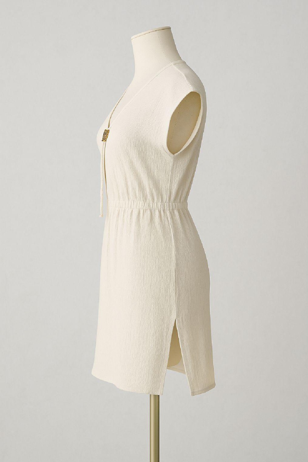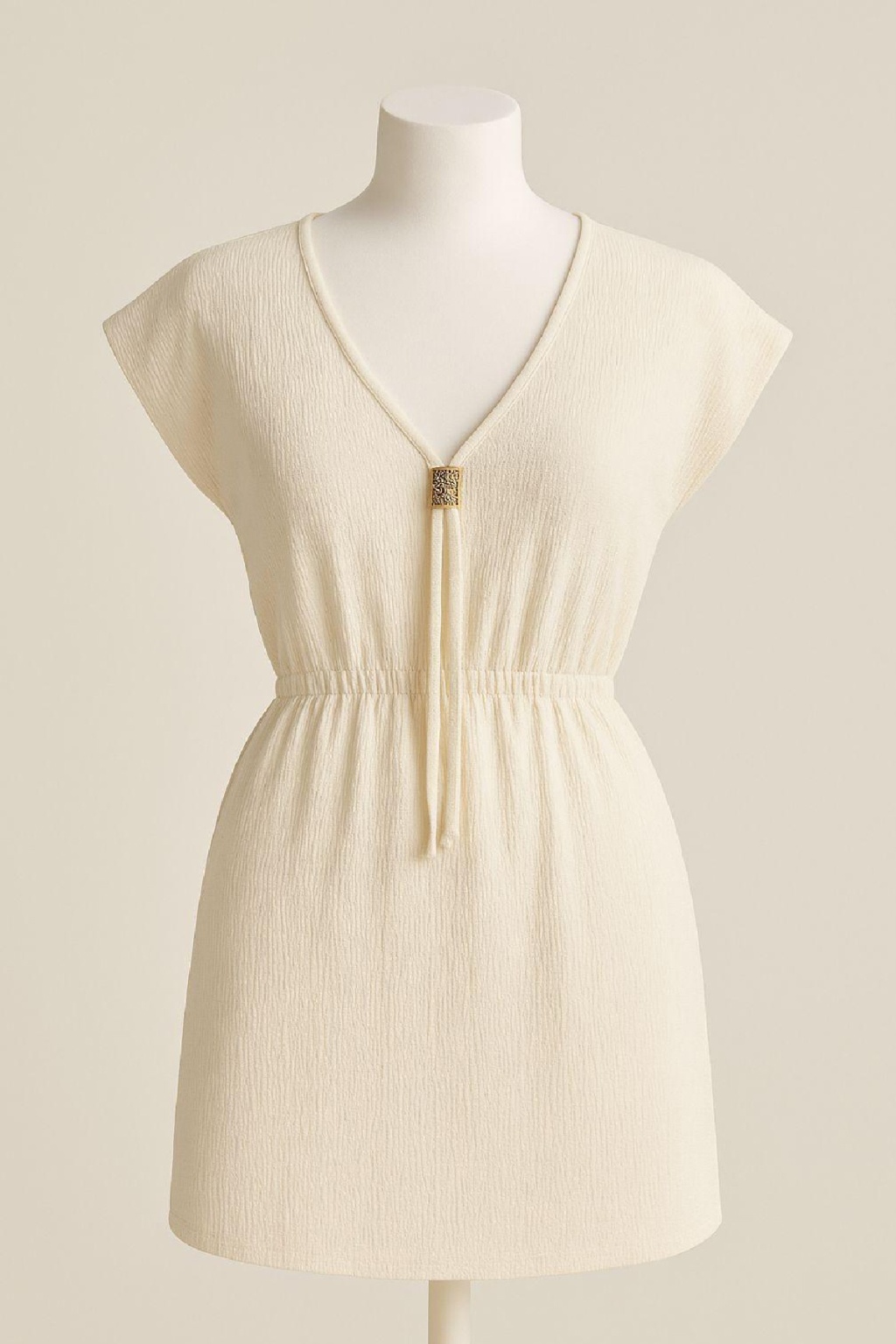 Kadın Beyaz Yanları Yırtmaçlı Tokalı V Yaka Mini Plaj Elbisesi – Şık, Rahat ve 4 Mevsim Kullanıma Uygun