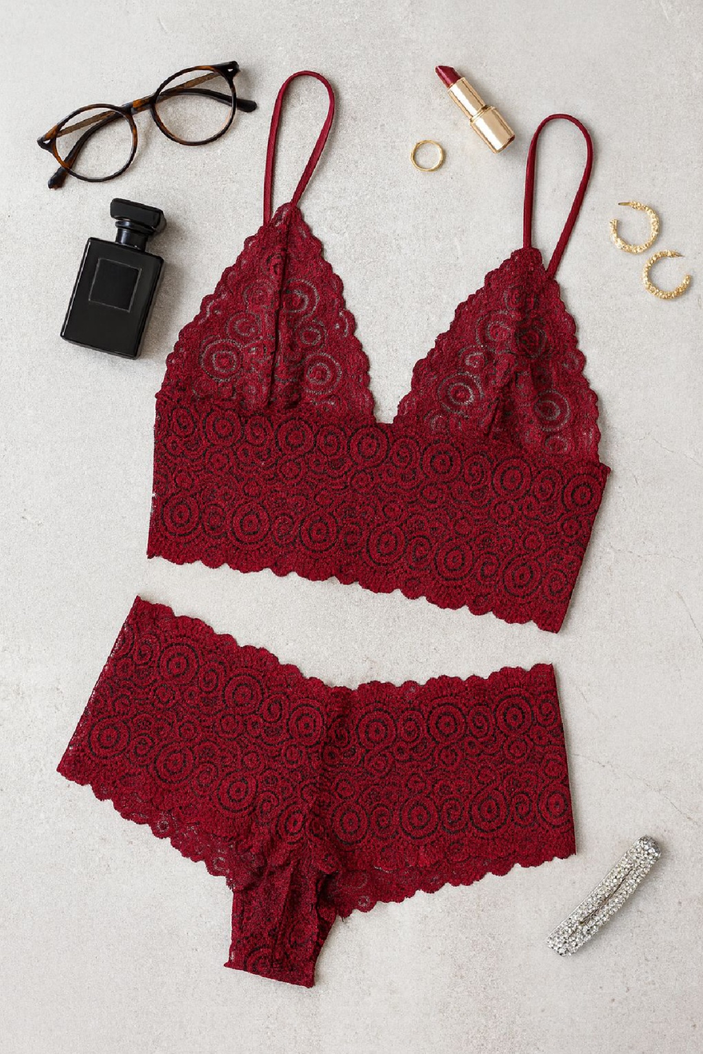 Kadın Bordo Dantel Bralet Şort Takımı – Asil ve Sofistike İç Giyim