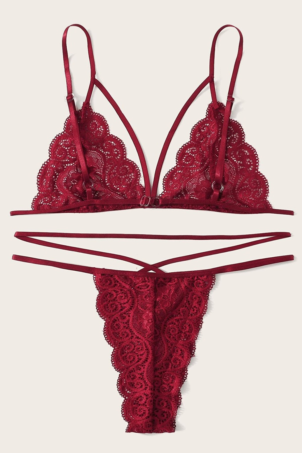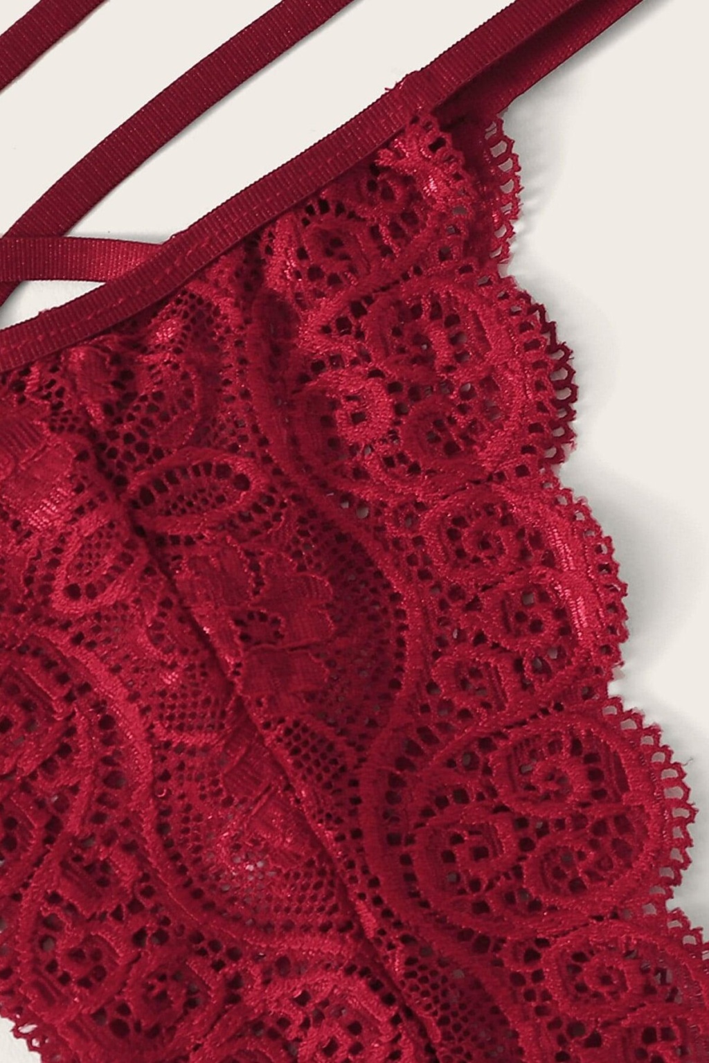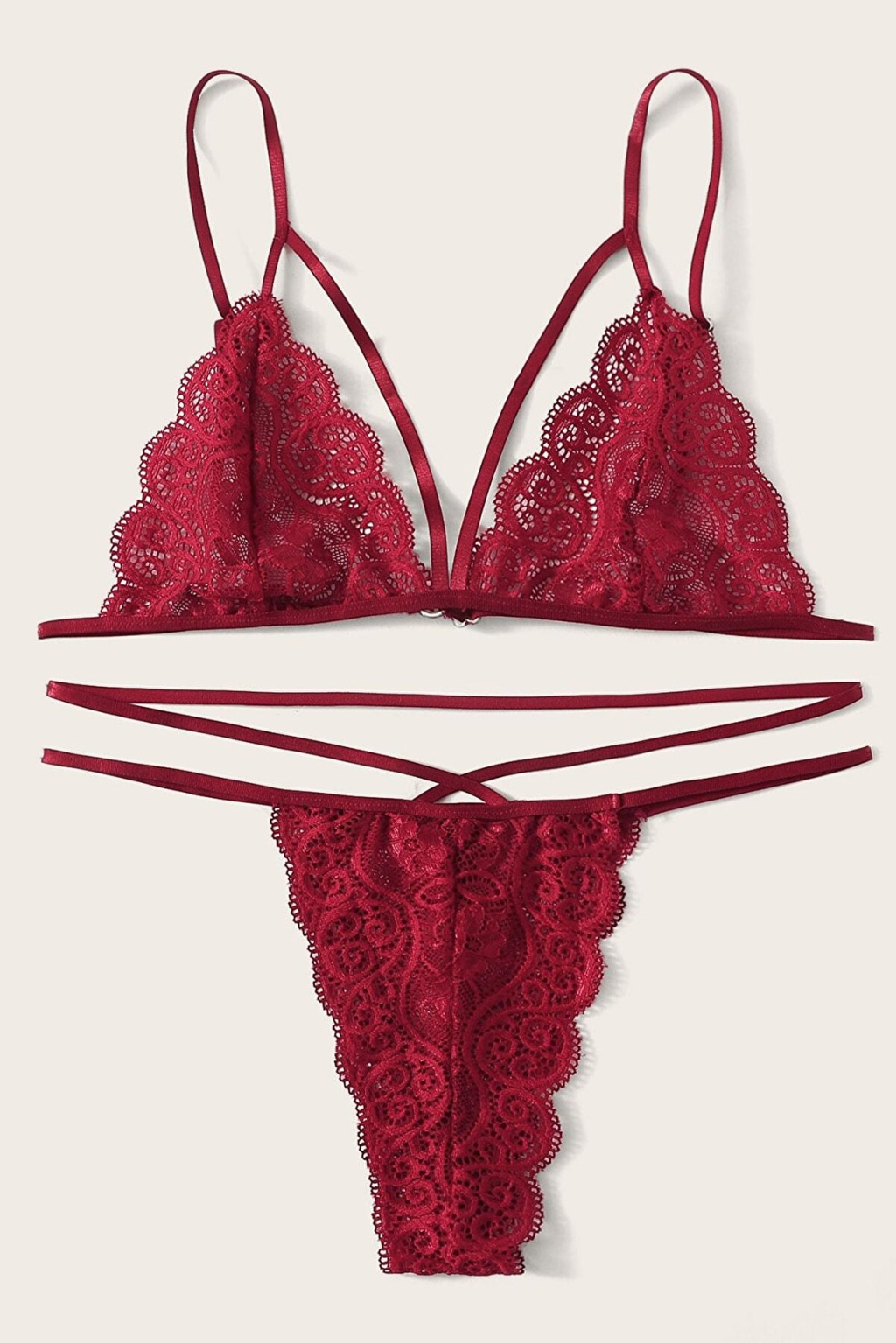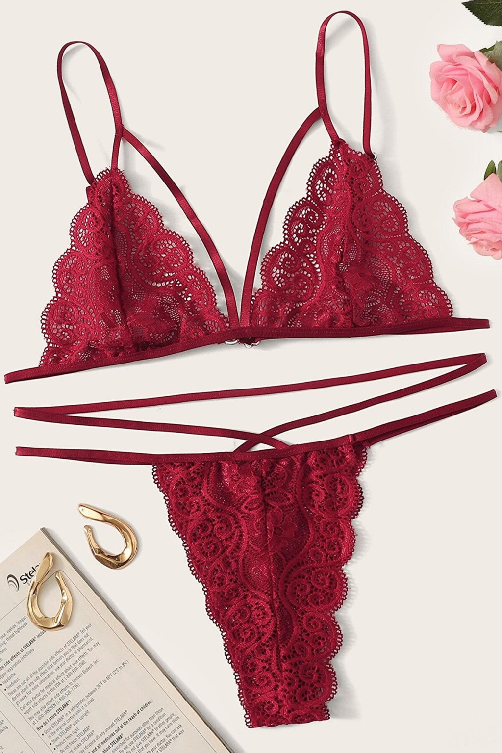 Kırmızı Çapraz Ip Detaylı Şık Sütyen Külot Takım