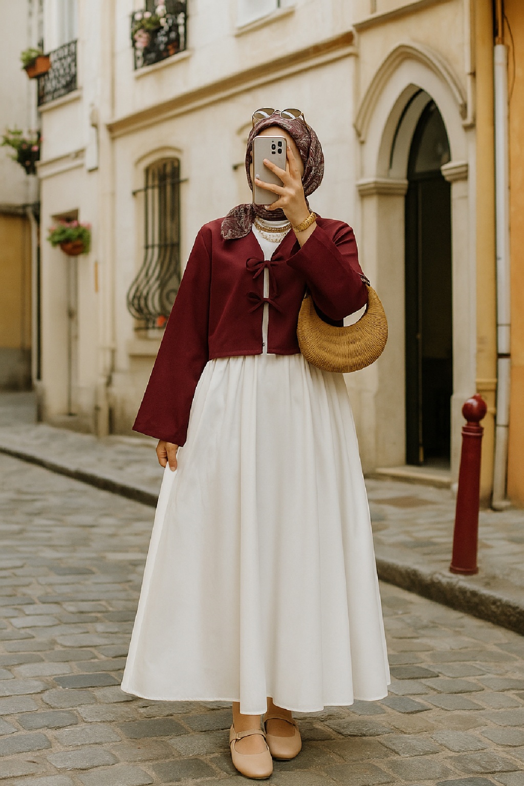 Kadın Bordo Kısa Kimono Ceket – Zarif ve Şık Kombin Parçası