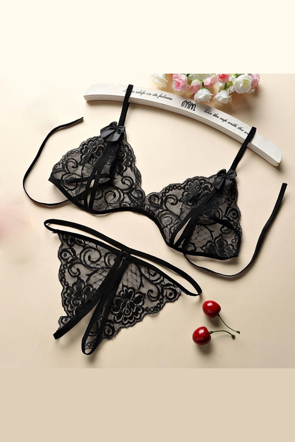 Kadın Siyah Dantel Cut-Out Detaylı Şık Sütyen ve Külot Takımı – Modern, Konforlu ve Günlük Kombinlere Uygun
