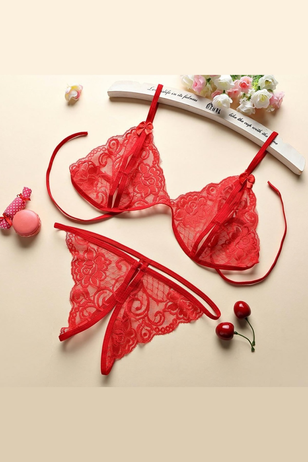 Kırmızı Çapraz Ip Detaylı Şık Sütyen Külot Takım