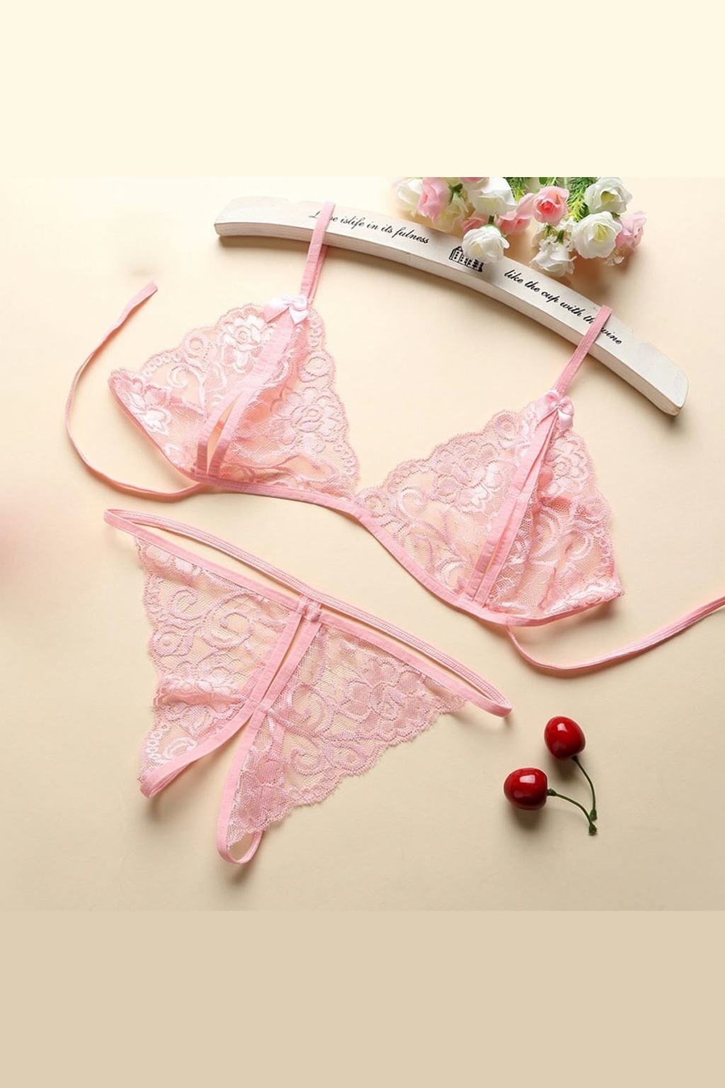Kadın Pembe Dantelli Sütyen Külot Takımı